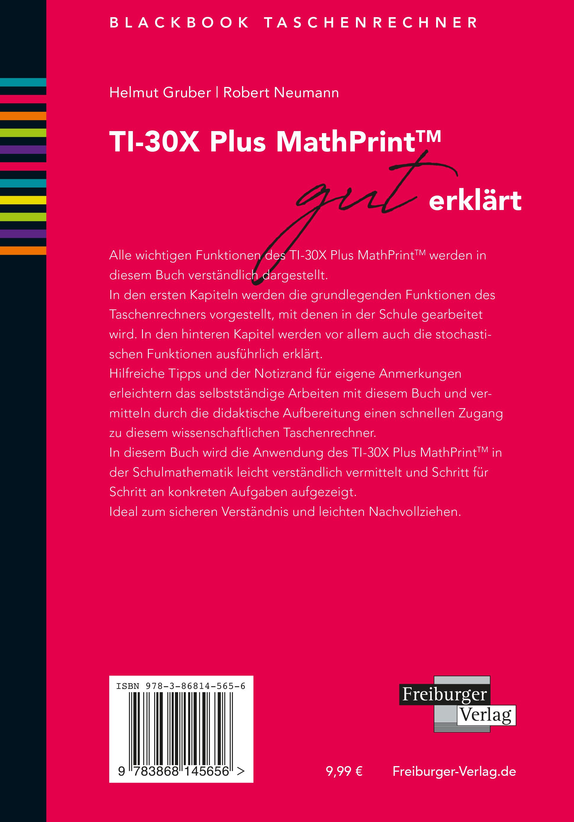 TI-30X Plus Mathprint Alle wichtigen Funktionen des TI-30X Plus MathPrint werden in diesem Buch verständlich dargestellt. In den ersten Kapiteln werden die grundlegenden Funktionen des Taschenrechners vorgestellt, mit denen in der Schule gearbeitet wird. In den hinteren Kapitel werden vor allem auch die stochastischen Funktionen ausführlich erklärt. Hilfreiche Tipps und der Notizrand für eigene Anmerkungen erleichtern das selbstständige Arbeiten mit diesem Buch und vermitteln durch die didaktische Aufbereitung einen schnellen Zugang zu diesem wissenschaftlichen Taschenrechner. In diesem Buch wird die Anwendung des TI-30X Plus MathPrint in der Schulmathematik leicht verständlich vermittelt und Schritt für Schritt an konkreten Aufgaben aufgezeigt. Ideal zum sicheren Verständnis und leichten Nachvollziehen.