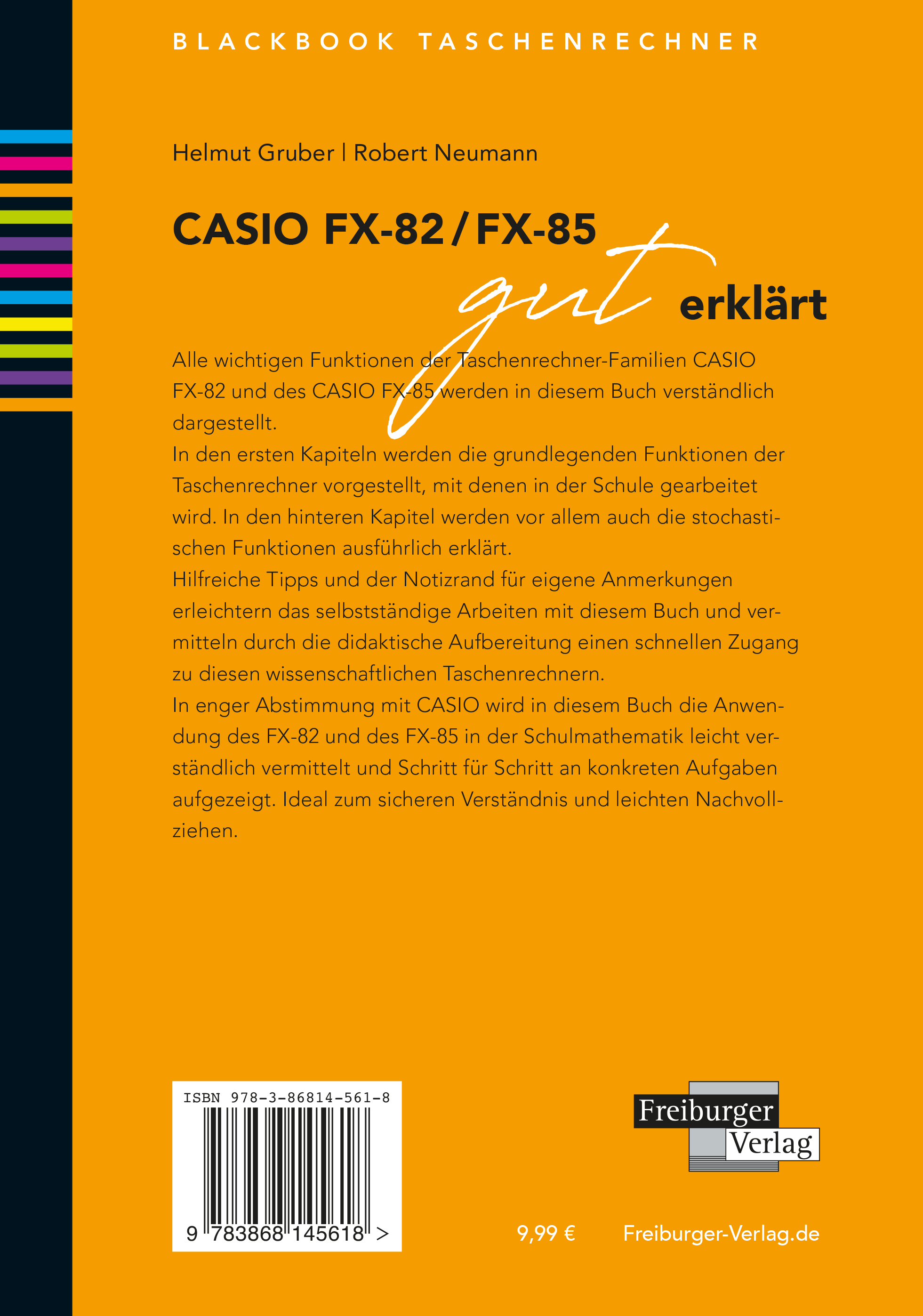 CASIO fx-82 / FX-85 gut erklärt Alle wichtigen Funktionen der Taschenrechner-Familien CASIO FX-82 und des CASIO FX-85 werden in diesem Buch verständlich dargestellt. In den ersten Kapiteln werden die grundlegenden Funktionen der Taschenrechner vorgestellt, mit denen in der Schule gearbeitet wird. In den hinteren Kapitel werden vor allem auch die stochastischen Funktionen ausführlich erklärt. Hilfreiche Tipps und der Notizrand für eigene Anmerkungen erleichtern das selbstständige Arbeiten mit diesem Buch und vermitteln durch die didaktische Aufbereitung einen schnellen Zugang zu diesen wissenschaftlichen Taschenrechnern. In enger Abstimmung mit CASIO wird in diesem Buch die Anwendung des FX-82 und des FX-85 in der Schulmathematik leicht verständlich vermittelt und Schritt für Schritt an konkreten Aufgaben aufgezeigt. Ideal zum sicheren Verständnis und leichten Nachvollziehen.