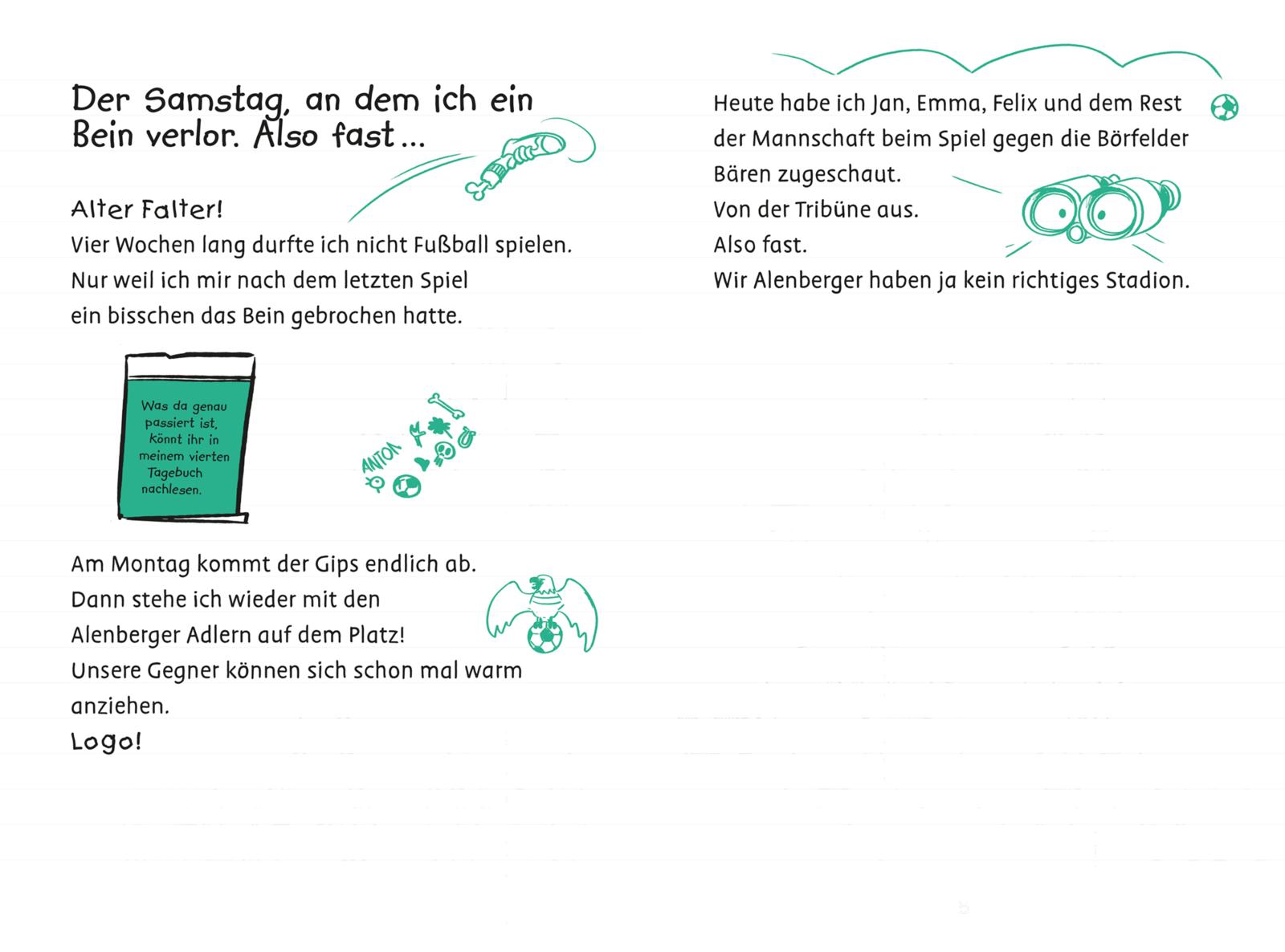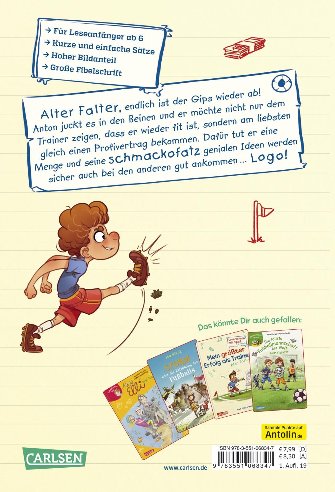 Alter Falter, endlich ist der Gips wieder ab! Anton juckt es in den Beinen und er möchte nicht nur dem Trainer zeigen, dass er wieder fit ist, sondern am liebsten gleich einen Profivertrag bekommen. Dafür tut er eine Menge, doch ob seine schmackofatz genialen Ideen auch bei den anderen gut ankommen? Logo!
