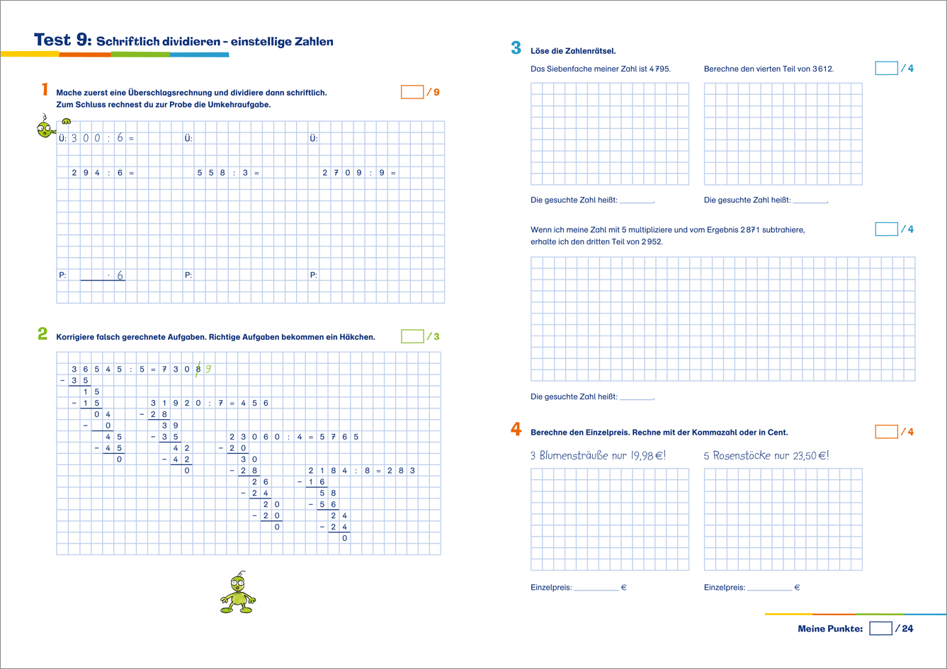 Das macht selbst Mathemuffel munter: Rechnen, Sachaufgaben und Geometrie lassen sich hier in 20 abwechslungsreichen Tests kinderleicht üben. Beim Verbessern helfen herausnehmbare Lösungsblätter und Angaben zur Punkteverteilung mit Notenschlüssel.