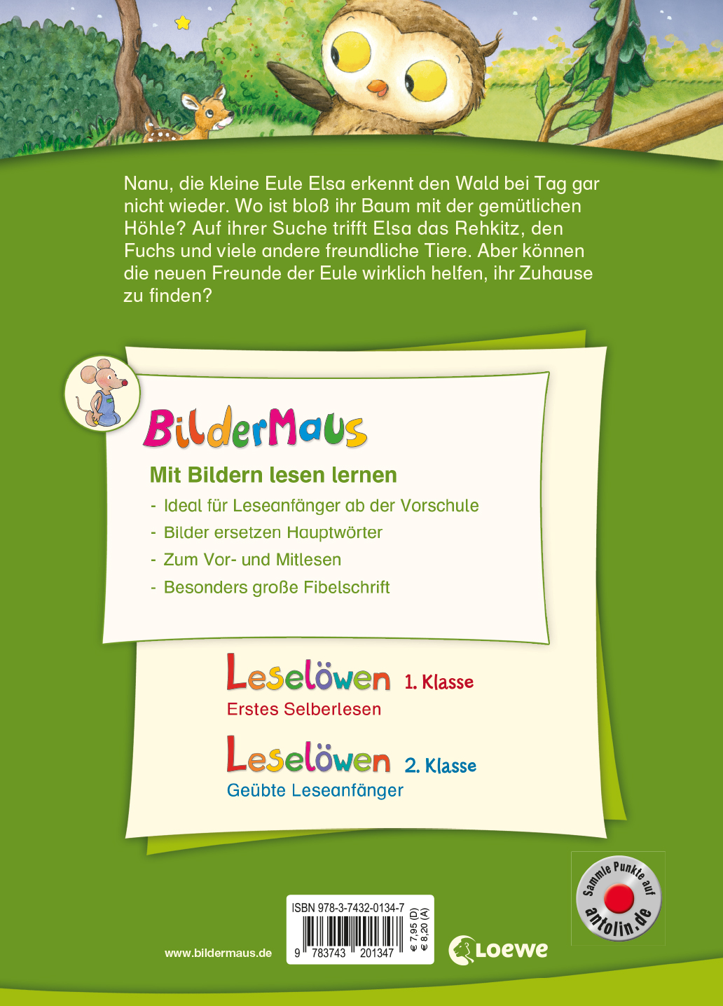 Nanu, die kleine Eule Elsa erkennt den Wald bei Tag gar nicht wieder. Wo ist bloß ihr Baum mit der gemütlichen Höhle? Auf ihrer Suche trifft Elsa das Rehkitz, den Fuchs und viele andere freundliche Tiere. Aber können die neuen Freunde der Eule wirklich helfen, ihr Zuhause zu finden?