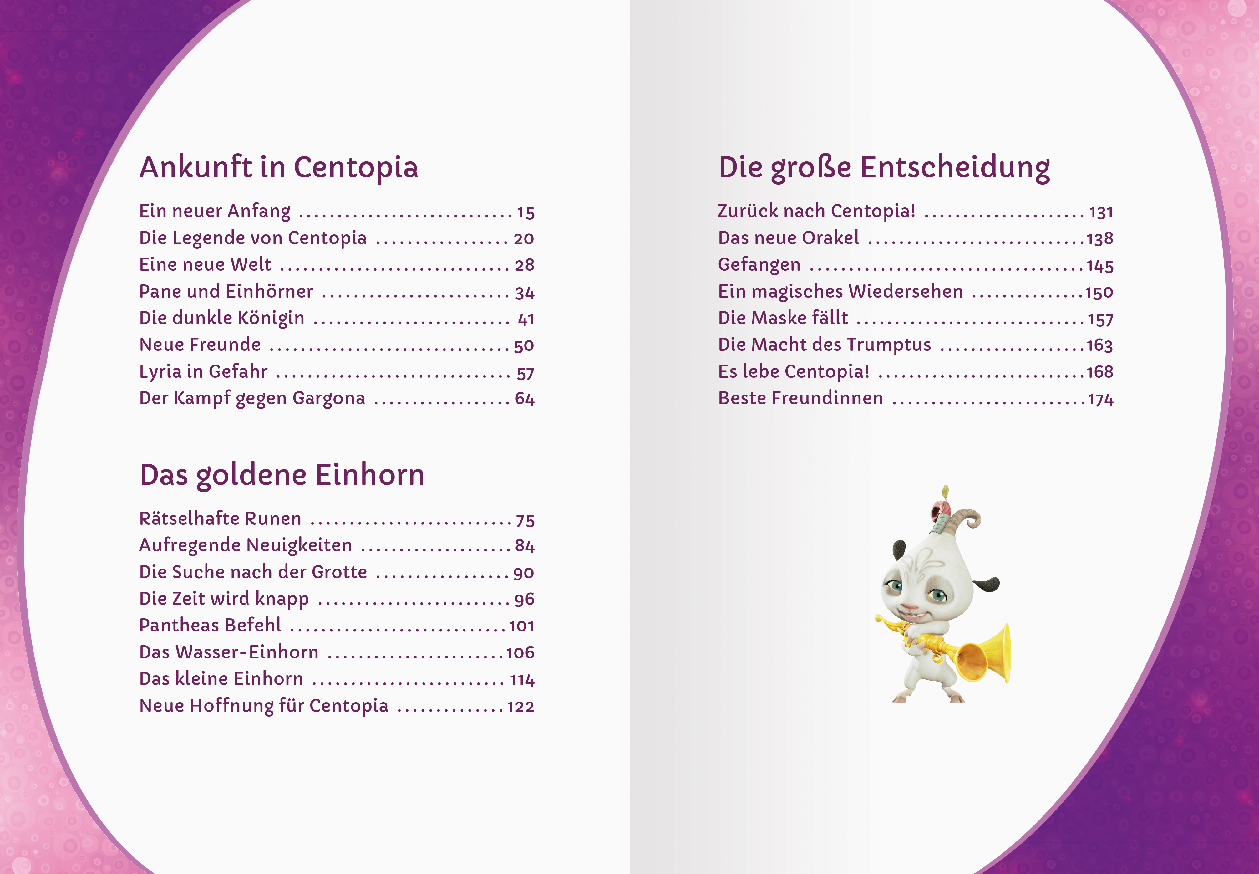 Dieser Sammelband zur ersten Staffel enthält drei komplette Folgen: "Ankunft in Centopia", "Das goldene Einhorn" und "Die große Entscheidung". Die Ereignisse zwischen den Folgen werden kurz nacherzählt. So kannst du Mias Abenteuer mit Onchao, Yuko und Mo von Anfang an miterleben!