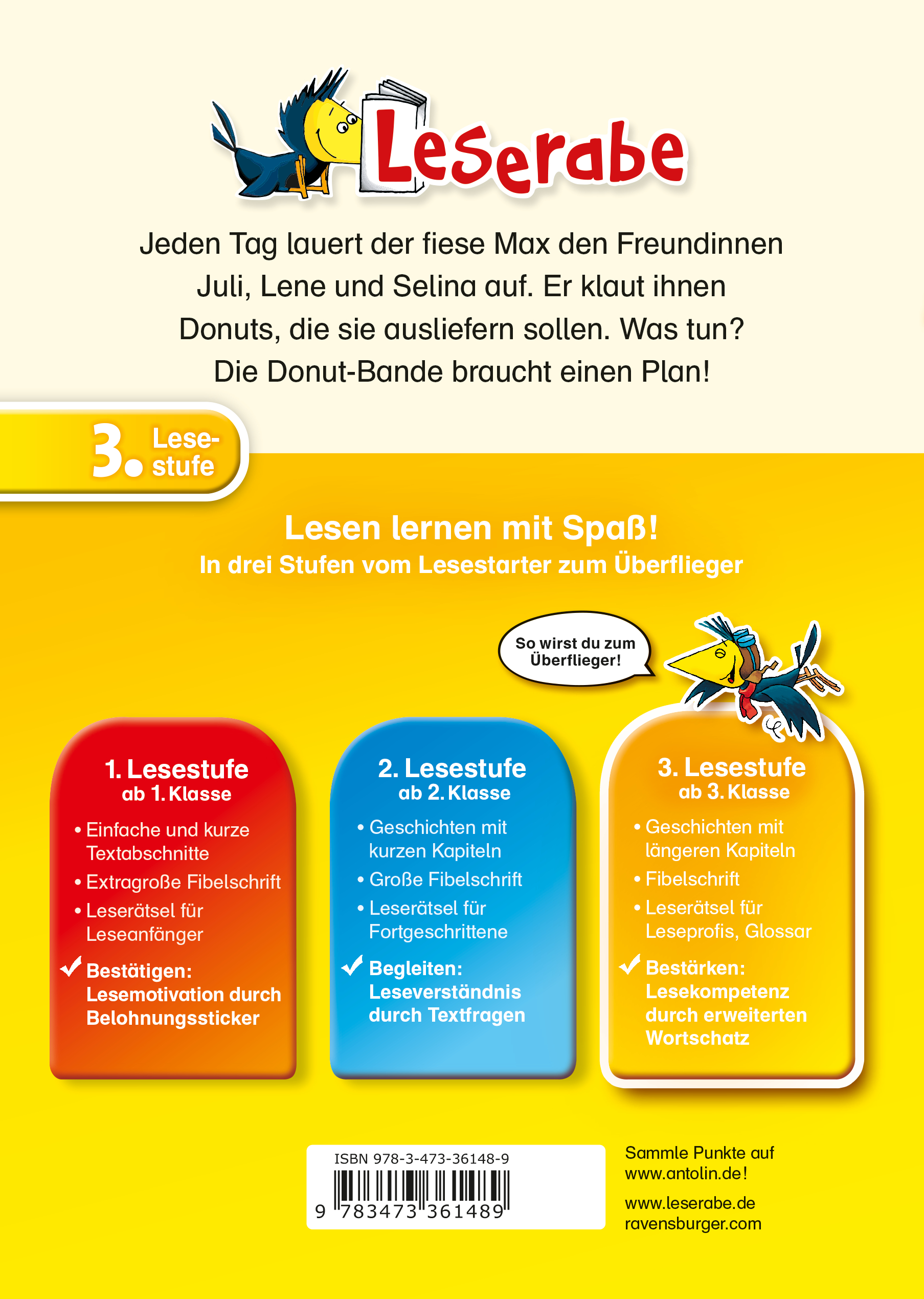 Lesen lernen wie im Flug! Die Kinderbücher der Reihe Leserabe – 3. Lesestufe wurden mit Pädagogen entwickelt und richten sich an Leseprofis ab der 3. Klasse. Durch spannende Geschichten mit längeren Kapiteln und erweitertem Wortschatz wird die Lesefähigkeit von Mädchen und Jungen ab 8 Jahren gefördert. Schwierige Wörter werden in einem Glossar erklärt.