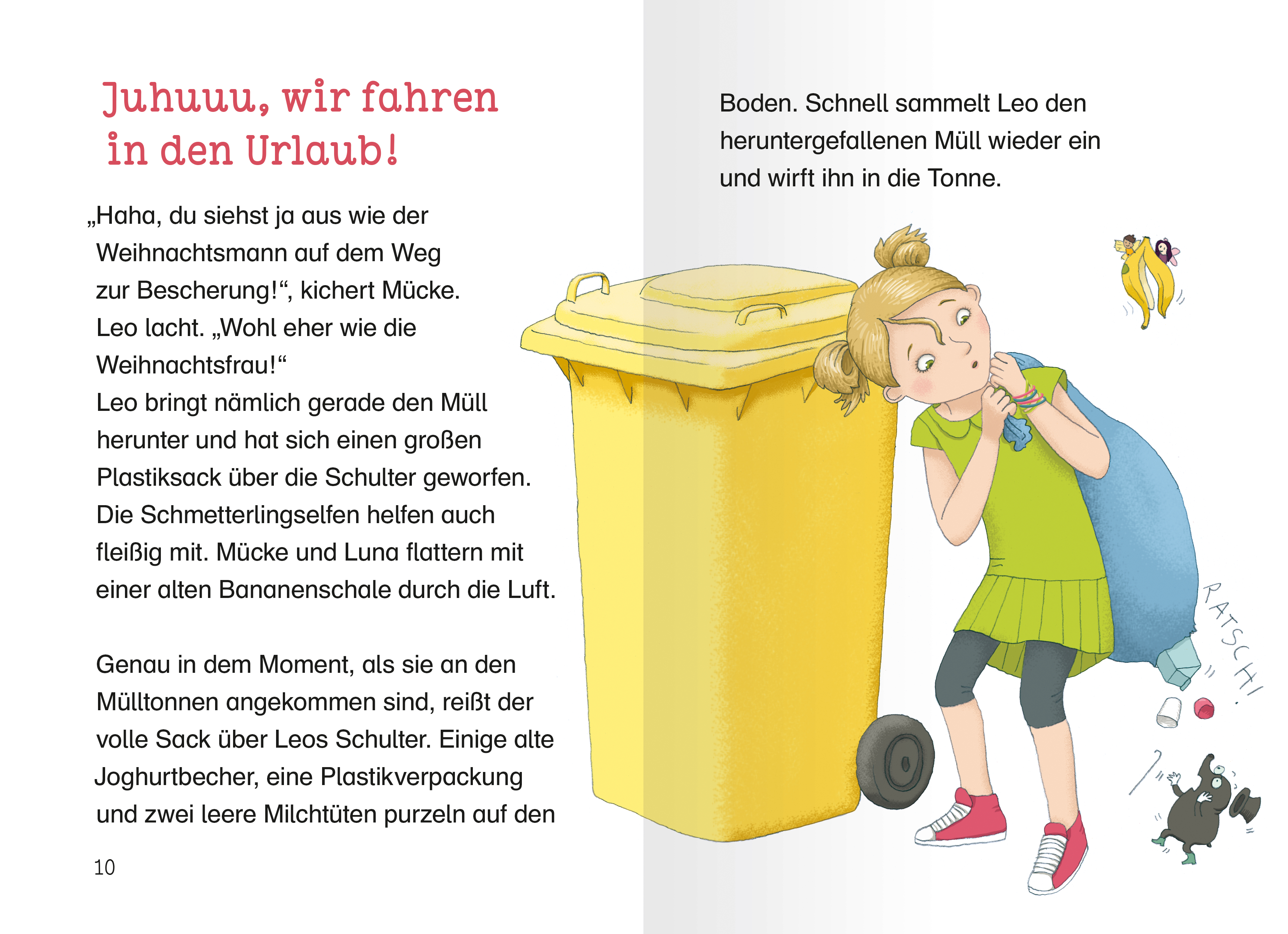 Leonie Looping und die Schmetterlingselfen machen Urlaub an der Nordsee. Doch der ganze Strand ist voll mit Plastikmüll! Die kleine Robbe hat Bauchschmerzen, weil sie eines der Plastikteile verschluckt hat. Und auch die Möwen, die sich in einem Plastiknetz verfangen haben, brauchen Leonies Hilfe. Band 7 der Erstlesereihe greift ein topaktuelles Umweltthema auf: Die Verschmutzung der Meere durch Plastikmüll!