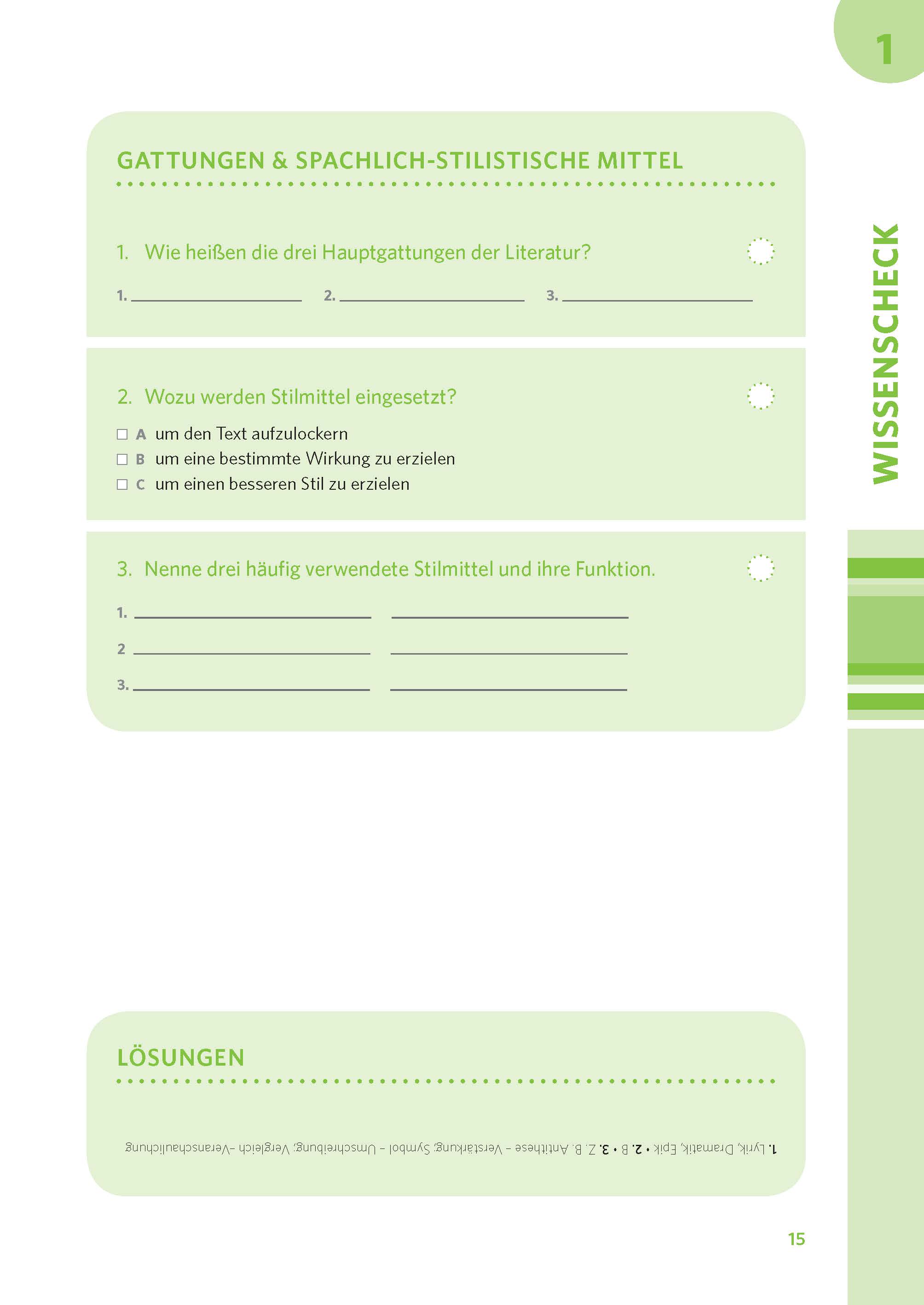 - Themenbereiche: Gattungen, Literaturgeschichte, wichtige Werke, Erörterung, Textanalyse, Zitieren
