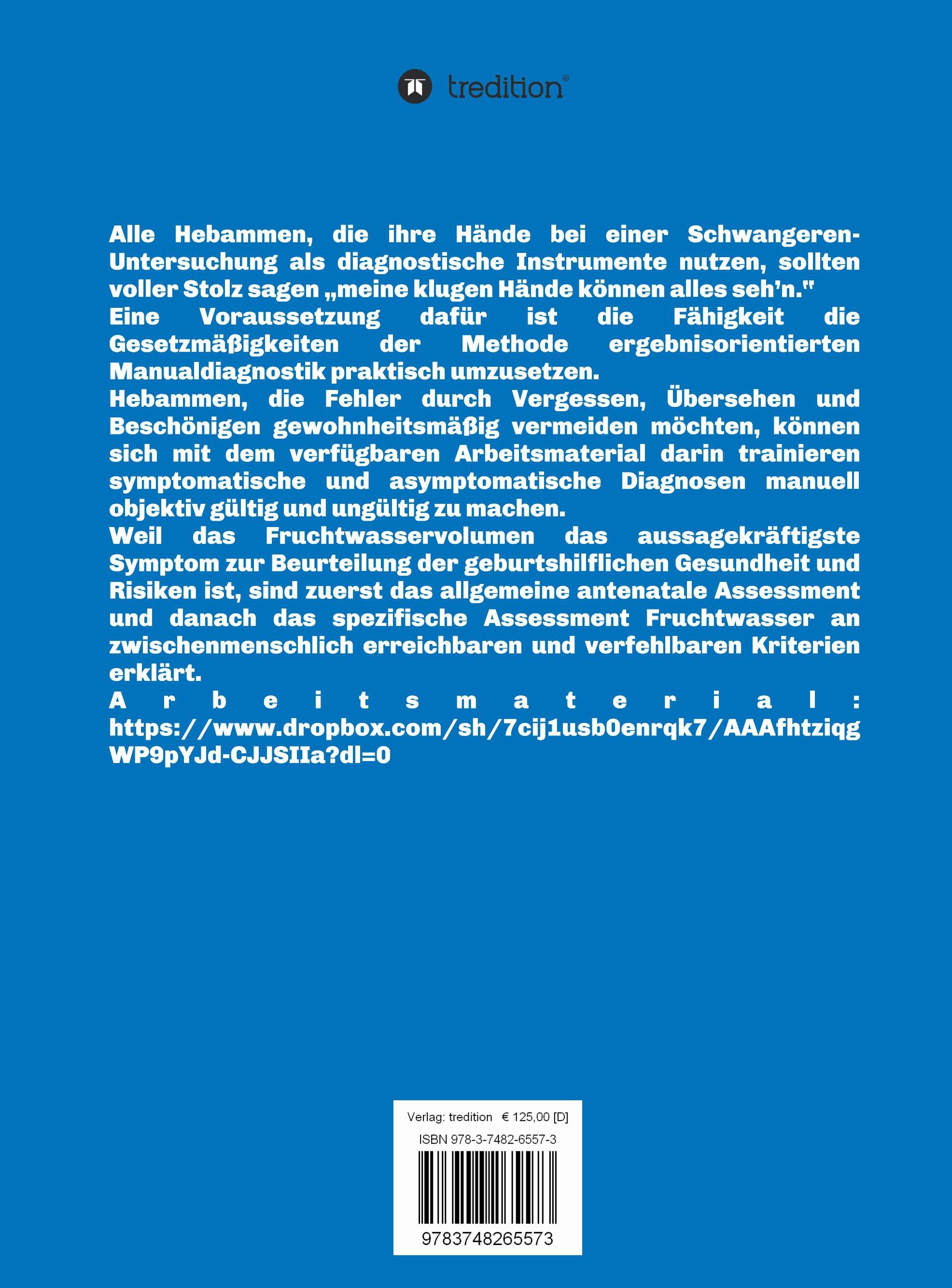 Dieses Buch ist ein Grundlagenwerk für Hebammen, die sich und den von ihnen betreuten schwangeren Frauen Sinn und Bedeutung der manuellen Untersuchung erklären möchten. Das Motto des Buches ist: "sind so kluge Hände - können alles seh'n, haben endlich Bild und Sprache - um das Können zu versteh'n." Konzepte, Bilder, Tabellen und Anleitungen zeigen die Handlungsabfolgen einer Schwangeren-Untersuchung, deren Ziel eine objektive Diagnose ist. Basis der Erklärungen sind naturwissenschaftliche Erkenntnisse zu Richtungen und Messpunkten. Tasten ist nicht mehr allein Kunst, Intuition und jahrelange Erfahrung, sondern ein praktisch erlernbares Können, bei dem bekannte Handgriffe qualitativ weiterentwickelt und die neu entwickelten Techniken dann mit Blick auf das angestrebte Ergebnis "Menge des Fruchtwassers in Deziliter einschätzen" ausgeführt werden. Am Beispiel eines vermeintlich zu geringen Fruchtwasservolumens wird erklärt, wie eine aussagekräftige Tast-Diagnose hergestellt wird. Es wird gezeigt, wie die manuelle Diagnostik die Schwangerenbetreuung verbessert und das Vertrauen der Frauen in die Hebammenkompetenz stärkt. Hebammen, die Tasten mit den erklärten Techniken einüben, lernen, ihrer Fähigkeit manuell zu untersuchen, besser zu vertrauen, da sie Sonografie-Ergebnisse ungültig und gültig machen können, indem sie ihre ertasteten Befunde fachlich angemessen begründen. Hebammen, die diese Chance nutzen, können sich die Fähigkeiten der ergebnisorientierten Manualdiagnostik aneignen, um sich wettbewerbsstrategisch vorteilhafte Perspektiven am Markt zu eröffnen. Global erstmals ist die originäre Hebammendiagnostik so beschrieben, dass sich ihr Wert als ein für die Menschheit wertvolles Kulturgut zeigt.