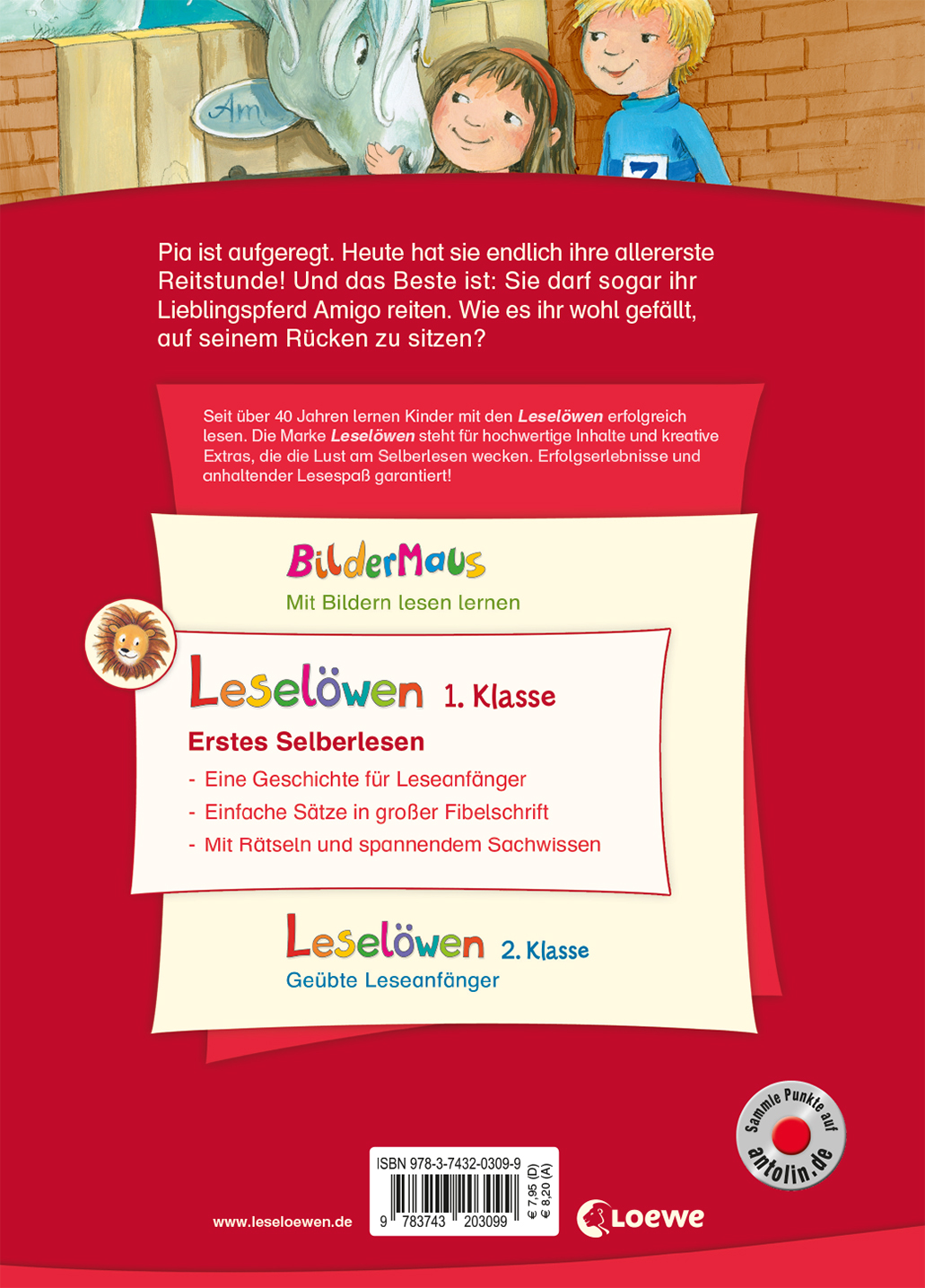 | Schlagworte | 1 Klasse deutsch • Antolin Bücher 1 Klasse • Erstlesebücher Bücher für Leseanfänger Erstleser • Erstlesegeschichten • Fibelschrift große Schrift • Geschenk Kind 6 Jahre ab Jahren Jährige • Geschenk zur Einschulung Schulstart Schulbeginn Sc • Geschenk zur Einschulung Schulstart Schulbeginn Schulanfang • Leseförderung Grundschule Klasse 1 • Leselöwen 1 Lesestufe Stufe 1 • Lesenlernen Lesen lernen 1 Klasse • Pferdegeschichten Ponygeschichten für Kinder Erstleser • Reiten lernen Reitstunde Reiterhof Reitschule |