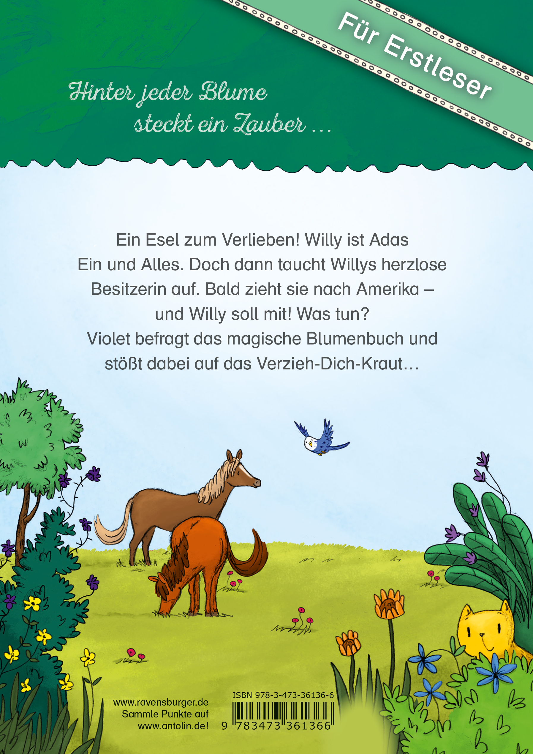 Hinter jeder Blume steckt ein Zauber!Violets Tante Abigail hat einen wundervollen Blumenladen - und kann mit magischen Blumen Menschen glücklich machen. Violet hat diese Gabe geerbt, doch eigentlich ist sie noch zu klein für Blumenmagie. Das findet zumindest Tante Abigail...Eines Tages betritt Ada den Blumenladen. Sie ist auf der Suche nach einem essbaren Geburtstagsgeschenk für Esel Willy und bekommt einen bunten Strauß aus Ringelblumen und Kräutern von Tante Abigail. Da wird sich Willy aber freuen!Am nächsten Tag begleitet Violet ihre neue Freundin zur Koppel und die beiden verbringen einen herrlichen Tag bei Willy. Doch dann kreuzt Willys herzlose Besitzerin Elfi auf und will Ada Willy wegnehmen. Was tun? Violet befragt heimlich das magische Blumenbuch und stößt auf das Verzieh-dich-Kraut. Das müsste doch das geeignete Mittel sein, um Elfi auf Nimmerwiedersehen zu vertreiben. Doch dann kommt alles ganz anders...Band 1: Der magische Blumenladen für Erstleser - Die verschwundenen KatzenBand 2: Der magische Blumenladen für Erstleser - Das geheimnisvolle MädchenBand 3: Der magische Blumenladen für Erstleser - Der verzauberte Esel