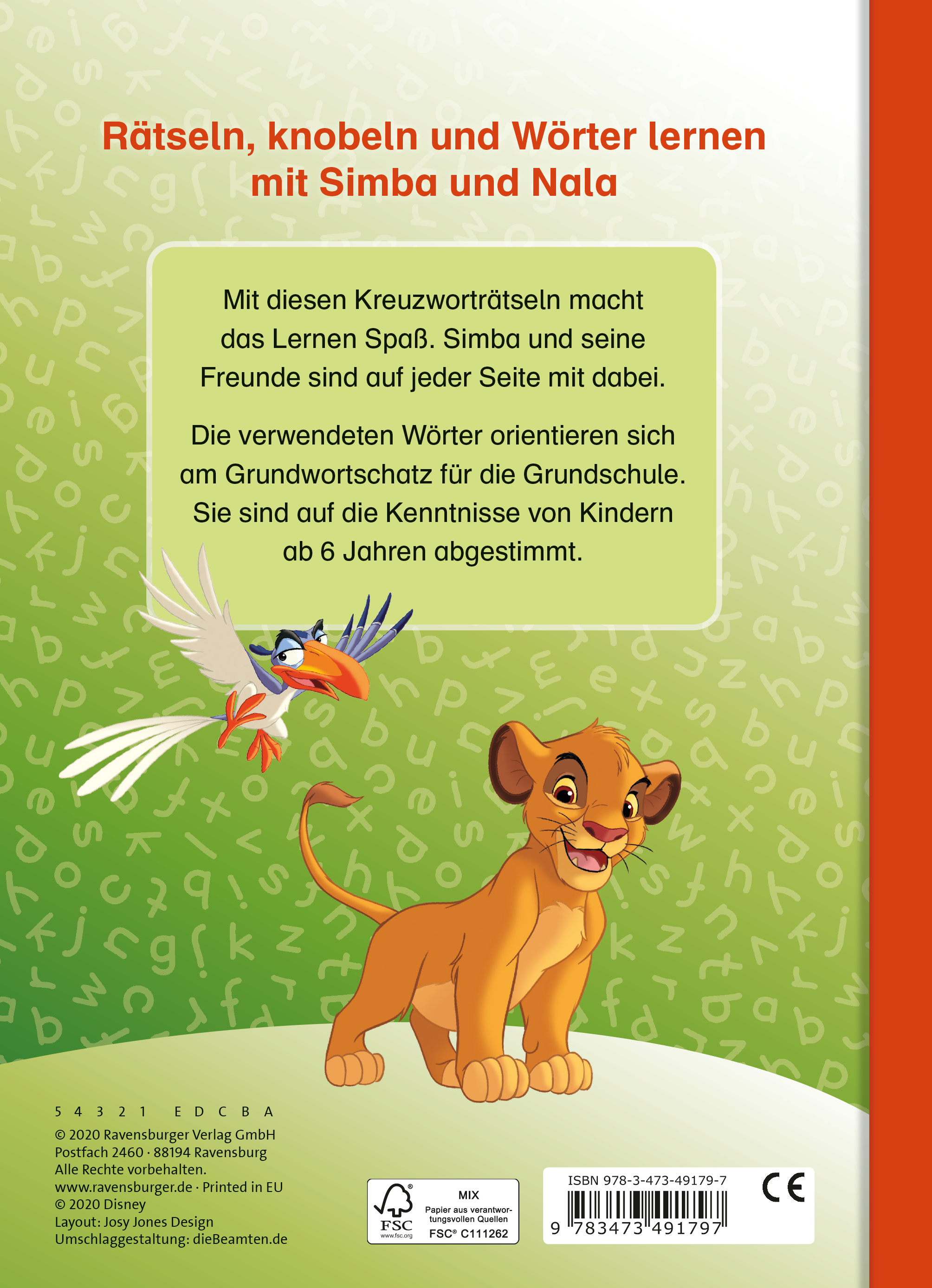 Spielerisch lesen und schreiben lernen mit Kreuzworträtseln und Suchgittern!Mit diesen Kreuzworträtseln erweitern Kinder ganz spielerisch ihren Wortschatz und werden sicherer im Schreiben und Lesen. Die gesuchten Wörter werden als Bild dargestellt. Zwischendurch sorgen Suchgitter mit Buchstabensalat für eine entspannende Abwechslung.Die vielen Bilder verbinden die Rätsel mit der bunten Welt aus dem "König der Löwen". So sind sie noch verspielter und begeistern natürlich alle Fans von Simba, Nala und Co.