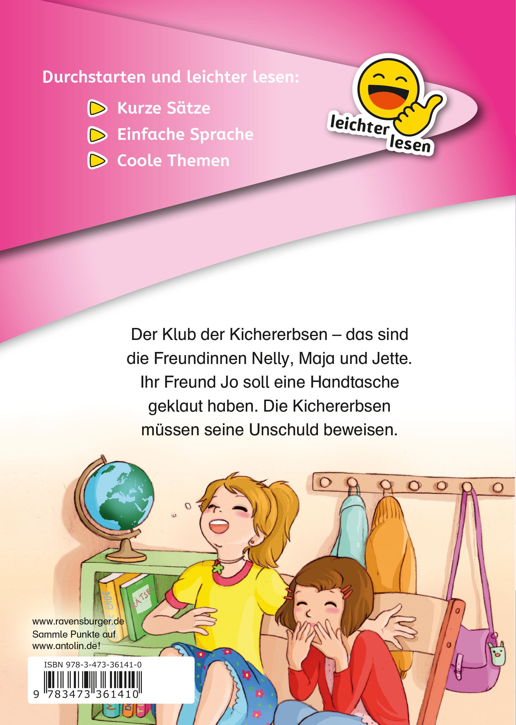 Endlich leichter lesen! Kurze Texte ermöglichen auch Kindern mit wenig Leseerfahrung schnelle Erfolgserlebnisse. Spannende Geschichten werden in einfachen Wörtern und kurzen Sätzen erzählt.Dabei ist der Text optimal gestaltet und bietet einen schnellen Überblick. Coole Illustrationen wecken das Interesse und bieten ein fantasievolles Leseerlebnis. "leichter Lesen" ermöglicht Kindern der 3. und 4. Klasse den Einstieg ins Lesen. Nur so kann Lesenlernen Spaß machen: in gut machbaren Portionen. Was macht diese Texte einfach? Bekannte Wörter, die häufig benutzt werden, kurze Wörter und ein einfacher Satzbau. Nur wenige Zeilen pro Seite ermutigen Kinder mit Leseschwierigkeiten das Lesen einfach mal auszuprobieren.Nelly, Maja und Jette sind weltbeste Freundinnen und gemeinsam sind sie "der Klub der Kichererbsen". Denn wenn die drei zusammen sind, gibt es immer etwas zu kichern. Doch das Lachen vergeht ihnen, als in ihrer Lieblingseisdiele eine Handtasche gestohlen und ihr Freund Jo verdächtigt wird. Jo ist kein Dieb!, da sind die Kichererbsen sich sicher - vor allem Nelly, die insgeheim ein bisschen in ihn verliebt ist. Zum Glück erinnert sie sich daran, dass ein Ehepaar vor der Eisdiele Fotos gemacht hatte, als der Handtaschenraub passierte. Nach einer spannenden Suche gelingt es den Mädchen, das Ehepaar wiederzufinden, und tatsächlich: Der Täter ist auf den Fotos zu sehen. Es handelt sich um einen bekannten Gauner, Jo ist also unschuldig. Die Kichererbsen sind erleichtert, bekommen eine Belohnung und essen nach diesem aufregenden Fall erst einmal einen großen Eisbecher.