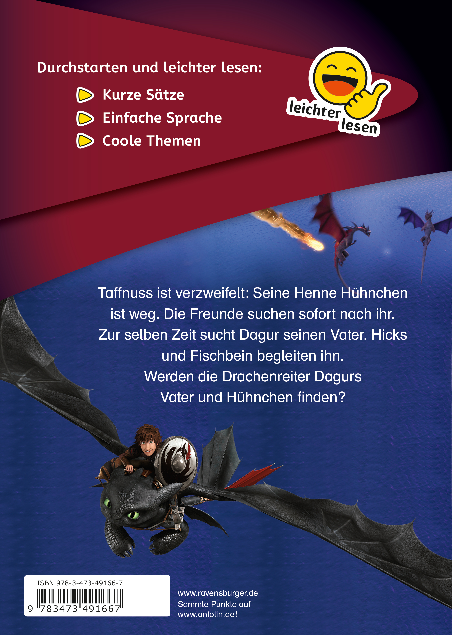 Auch Dagur macht sich auf die Suche. Er möchte seinen Vater finden. Hicks und Fischbein begleiten ihn dabei. Werden die Drachenreiter Dagurs Vater und Hühnchen finden?