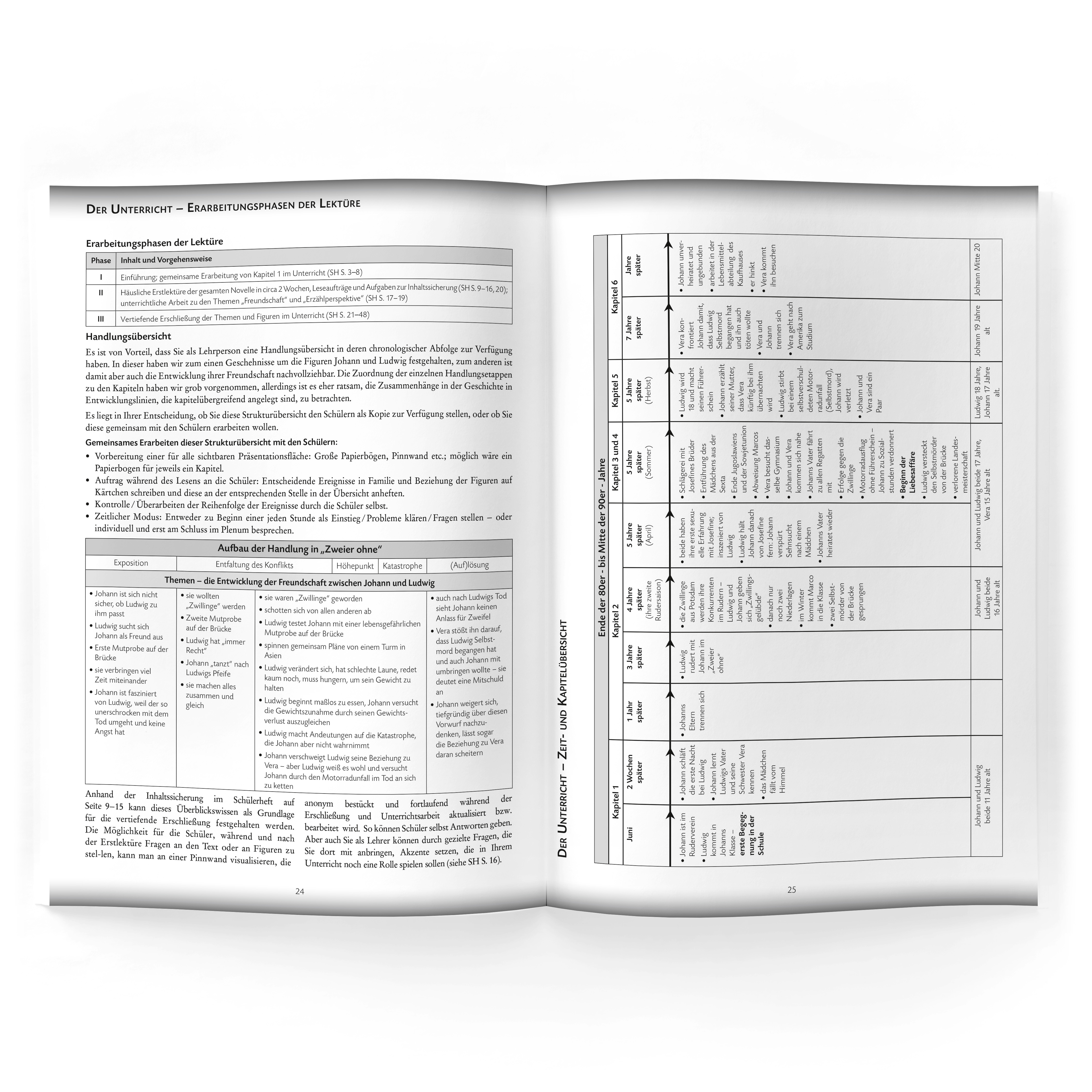 "In der Nacht, als das Mädchen vom Himmel fiel, wurde Ludwig mein Freund." Mit diesem Satz beginnt die Novelle Dirk Kurbjuweits über eine wunderbare, aber auch zerstörerische Freundschaft zwischen dem Erzähler Johann und Ludwig, der mit seinen Eltern unter einer hohen Autobahnbrücke lebt, von der immer wieder Menschen in den Tod springen. So tragen die Brücke und das Geschehen von «Zweier ohne» - die Ahnung einer «Ungeheuerlichkeit» in sich. Johanns inniger Wunsch nach einer Freundschaft scheint sich durch Ludwig, den "Neuen" in der Klasse, zu erfüllen. Sie verbringen sieben Freundschaftsjahre in einer symbiotischen Beziehung, erfahren ihre erste sexuelle Beziehung und erleben gemeinsam den Abschied von ihrer Kindheit. Ein altes Motorrad, das sie gemeinsam restaurieren und ihre erfolgreiche Harmonie im "Zweier ohne", einem Ruderboot ohne Steuermann, schweißen sie zusammen. "Wir waren Zwillinge geworden", freut sich Johann. In seiner Naivität bemerkt er jedoch nicht, dass Ludwig ihm das Eigene nehmen will und die Freundschaft zu ihm missbraucht, indem er ihn als Abbild seiner selbst formen möchte. So ahnt Johann auch nicht, welche Reaktionen er auslöst, als er mit Vera, Ludwigs Schwester, eine heimliche Beziehung beginnt. Als Zwillinge aus Potsdam ihre Siegesserie im Rudern unterbrechen und sie umso eiserner vor dem entscheidenden Wettkampf trainieren, versteht Johann nicht, warum Ludwig an Gewicht zulegt und so den Sieg gefährdet. Eine gemeinsame Fahrt auf ihrem Motorrad endet in einem Unfall, doch Vera widerspricht der Folgerung Johanns, es sei ein Unfall gewesen. Das Lehrerheft ausführlicher Unterrichtsteil unter Einbezug des Schülerheftes selbstverständlich Schreibaufgaben mit Lösungsvorschlägen Institutionen und Kontaktadressen Analyse der Novelle "Zweier ohne" Erzählstruktur und novellistische Gestaltung Aufbau, Figuren und Motive Die Entstehungsgeschichte der Novelle Die Verfilmung der Novelle von Jobst Christian Oetzmann im Unterricht Das Schülerheft (ist erhältlich unter der ISBN: 9783941206540) enthält: Schreibaufgaben mit Hilfestellungen Werkstattgespräch mit dem Autor Dirk Kurbjuweit Inhalts- und Verständnissicherung Freundschaft zwischen Johann und Ludwig Vera und Johann Figurenkonstellation Beziehungen Freundschaft und Identität Pubertät und Sexualität Symbolik in der Novelle