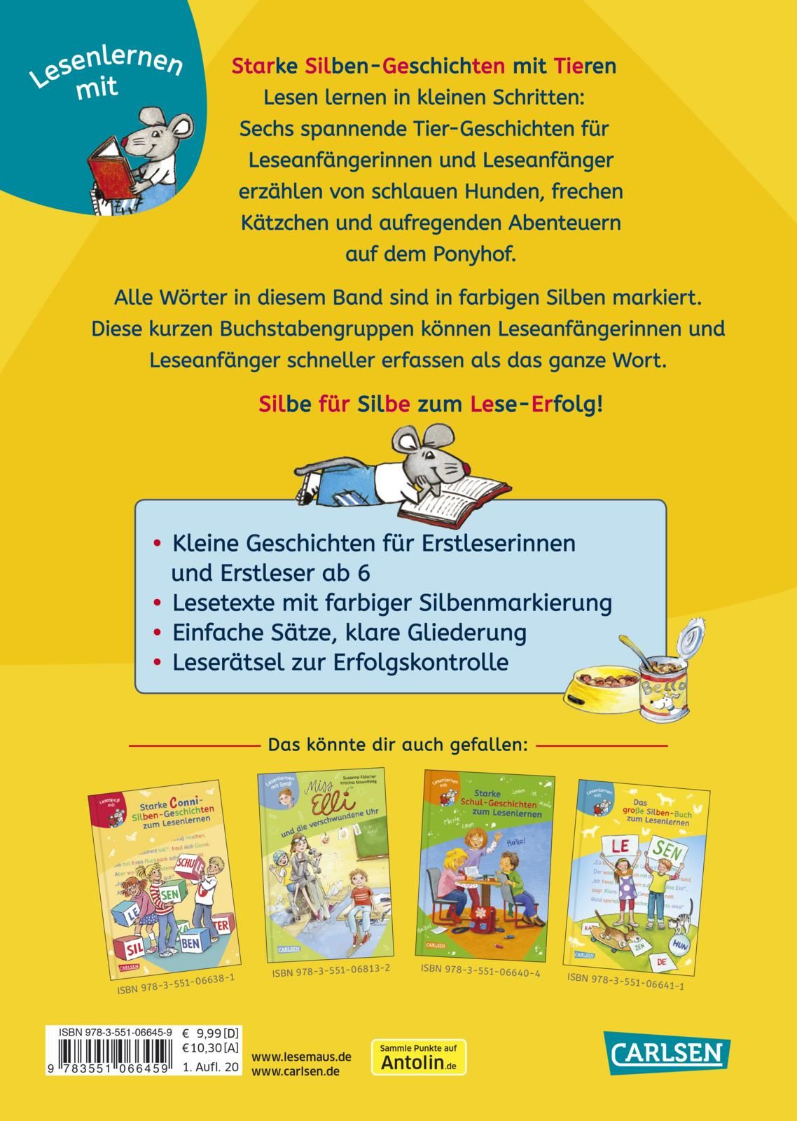 lt;p>Lesen lernen in kleinen Schritten: Sechs spannende Tier-Geschichten für Leseanfängerinnen und -anfänger erzählen von schlauen Hunden, frechen Kätzchen und aufregenden Abenteuern auf dem Ponyhof.
