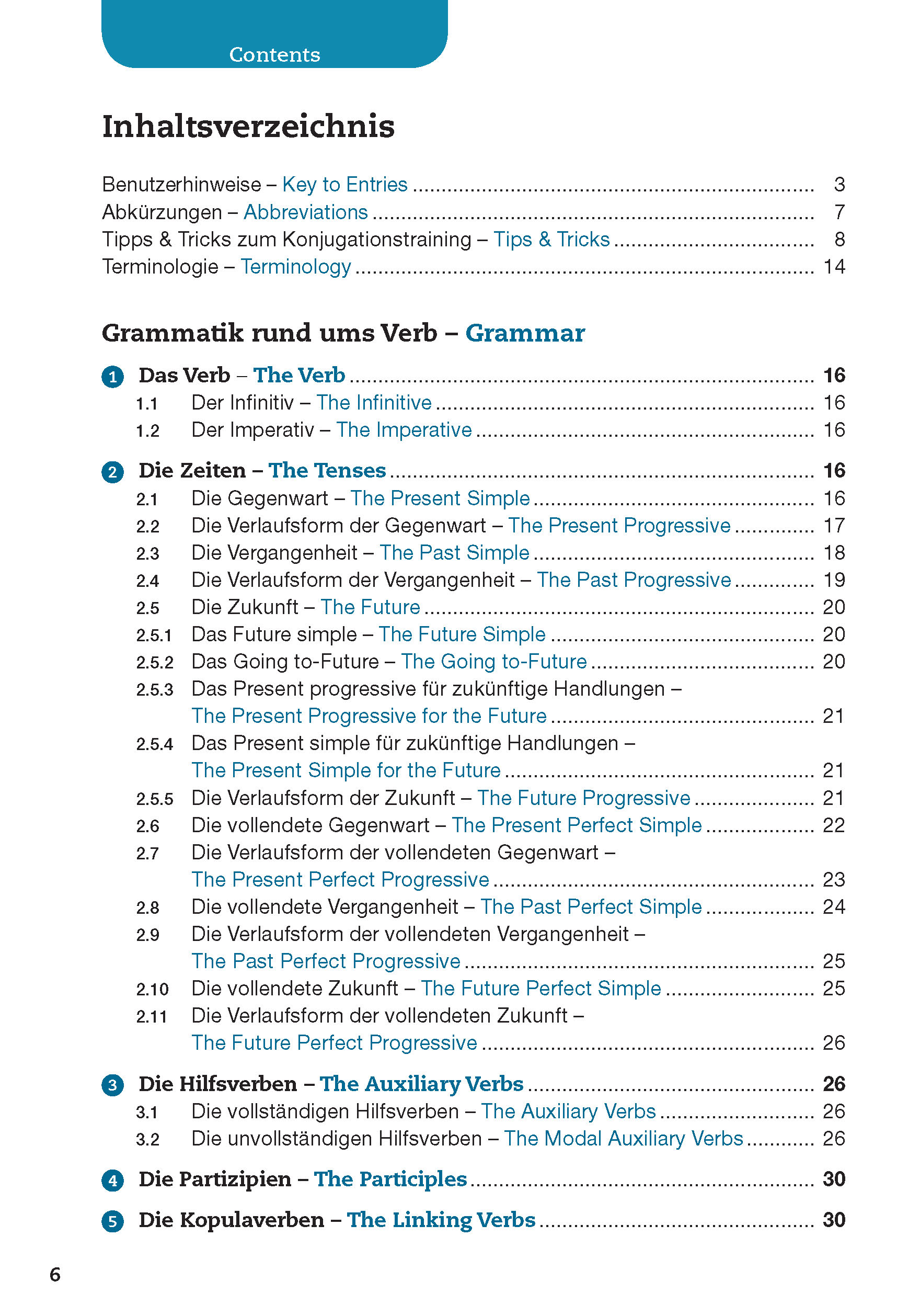 - Pro Verb eine Doppelseite mit allen wichtigen Informationen zum Gebrauch
