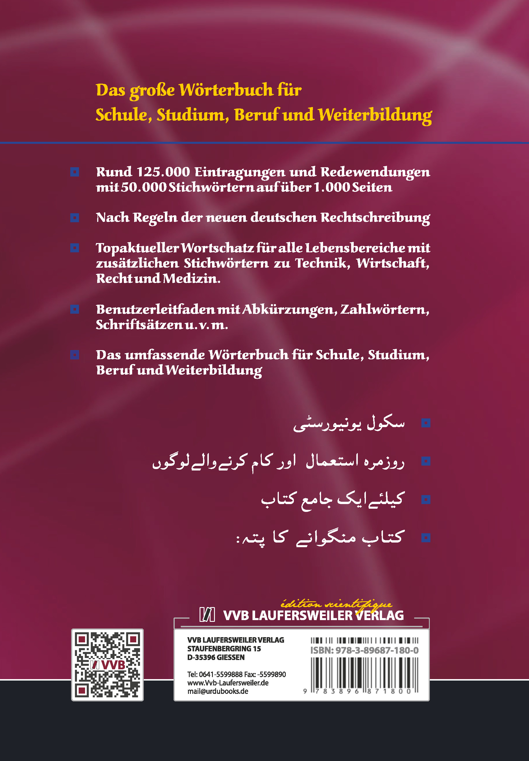 Inklusive moderne und wissenschaftliche Fach- und Umgangssprache des pakistanischen Urdu mit 125.000 Eintragungen und 50.000 Stichwörtern