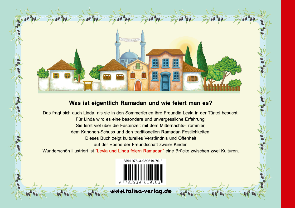 Ein pädagogisches Hilfsmittel im Rahmen religionspädagogischen Arbeit im Kindergarten, in der Grundschule einzusetzen."Leyla und ihre Freundin Linda aus Köln treffen sich im Sommer in der Türkei. Linda ist Gast bei Leylas Familie in Ayvalik und zusammen feiern sie Ramadan. Für Linda wird es eine besondere und unvergessliche Erfahrung: mit dem Mitternachts-Trommler, den Kanonen-Schuss und die traditionelle Ramadan Festlichkeiten taucht Linda in eine Kultur ein die sie nur teilweise aus Deutschland kennt. Dieses Buch zeigt kulturelles Verständnis und Offenheit auf der Ebene der Freundschaft zweier Kinder. Wunderschön illustriert, "Leyla und Linda feiern Ramadan" ist eine Brücke zwischen zwei Kulturen."Kostenlose pädagogische Begleitmaterialien zum Downloaden auf www.talisa-verlag.de!