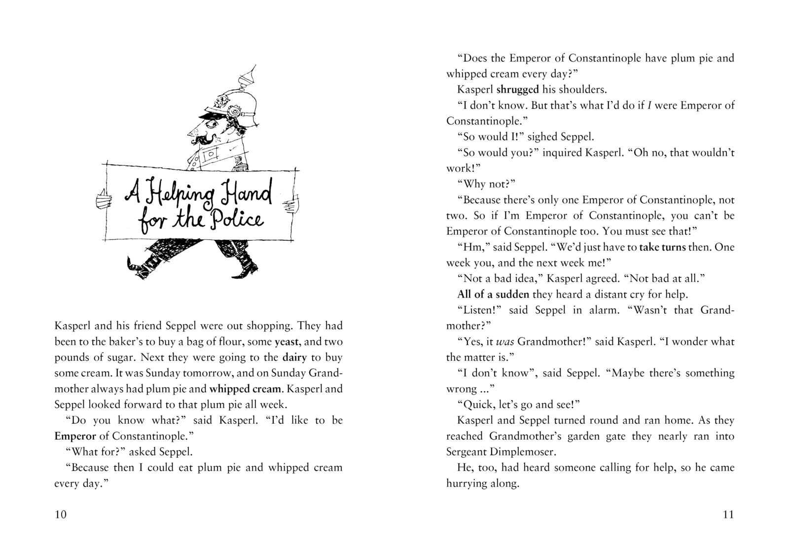 "The Robber Hotzenplotz" is a well-known German children's book by famous writer Otfried Preußler. In this edition, readers of all ages can follow a funny story full of twists and turns about the coarse robber, clever Kasperl and clumsy Seppel. Paperback with black and white illustrations.
