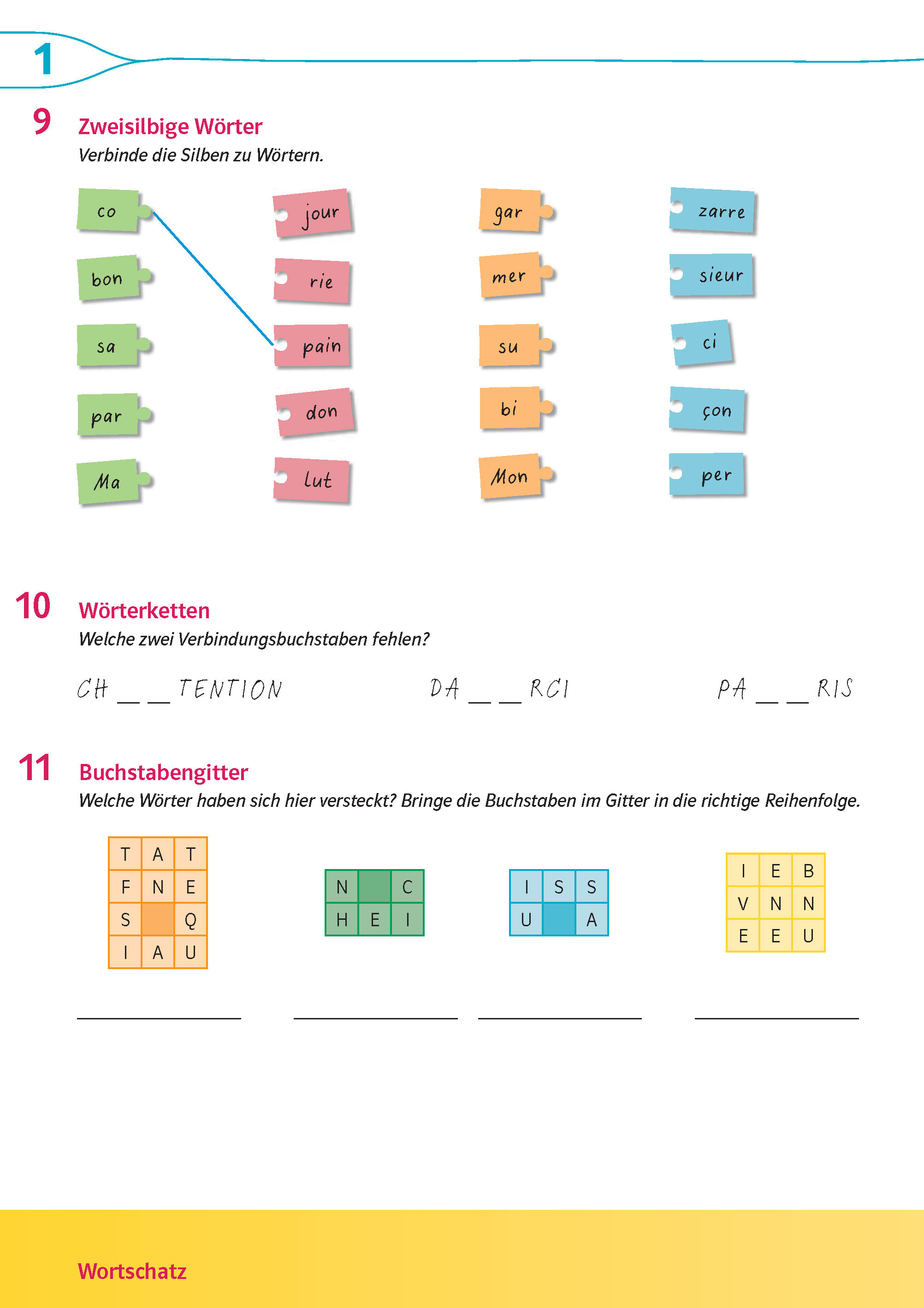 - Französische Grammatik und Wortschatz passend zur Lektion im Schulbuch trainieren