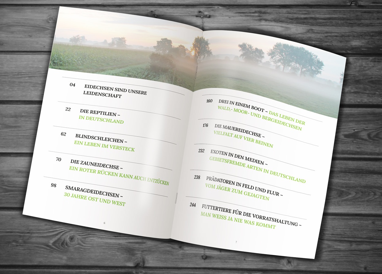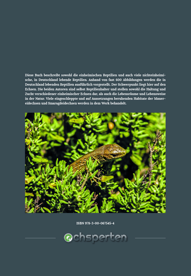 Wir stellen im Buch nicht nur das Leben der Echsen in der Natur vor, darüber hinaus auch die Haltung im Terrarium und in Freilandanlagen. Die Pflege der einheimischen Echsen und auch des dazugehörigen Futters wird ausführlich gezeigt und umfangreich erklärt. Die rechtlichen Voraussetzungen zur Haltung der geschützten Reptilien werden erläutert. Die Haltung, Zucht und Aufzucht der beiden Smaragdeidechsen erhält einen hohen Seitenanteil im Buch und verdeutlicht damit das besondere Interesse unsererseits an diesen beiden großen Eidechsen