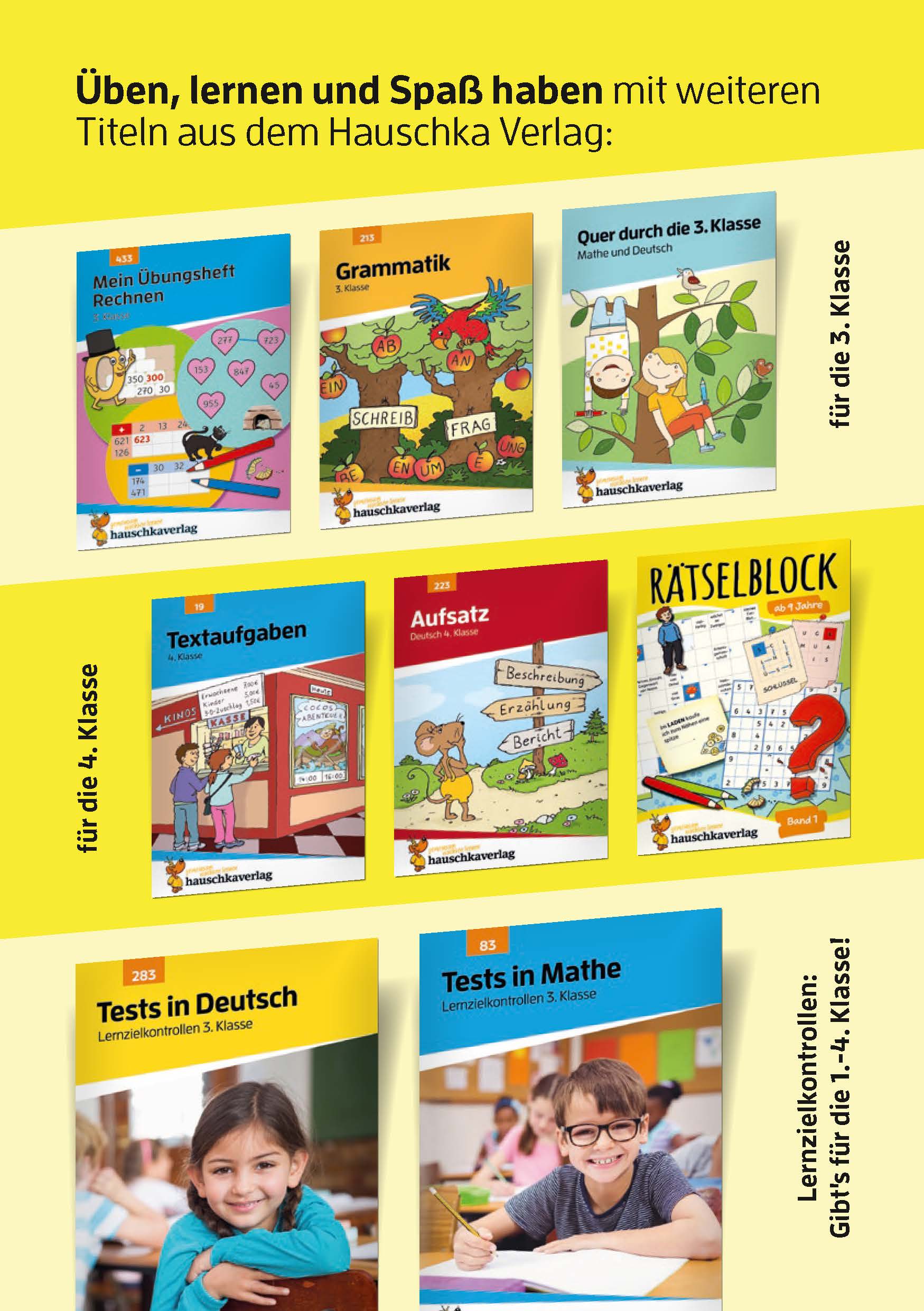 Die Hauschka-Redaktion arbeitet seit Jahrzehnten daran, Kinder mit Freude zum eigenständigen Lernen zu befähigen. Auch dieses Heft ist intuitiv verständlich, kindgerecht konzeptioniert und mit zahlreichen Schulkindern getestet und optimiert. Sie werden es selbst erleben: Ihr Kind wird Spaß beim eigenständigen Wiederholen haben.