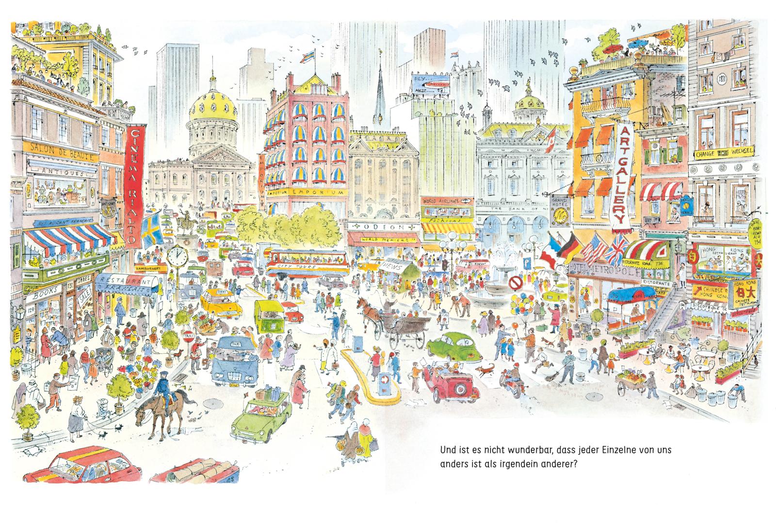 Menschen, die in Häusern wohnen, in Zelten oder auf einem Hausboot. Manche essen mit Stäbchen und manche mit den Händen. Wie wunderbar, dass jeder von uns anders ist als irgendein anderer. Denn genau das macht die Welt bunt und lebendig.