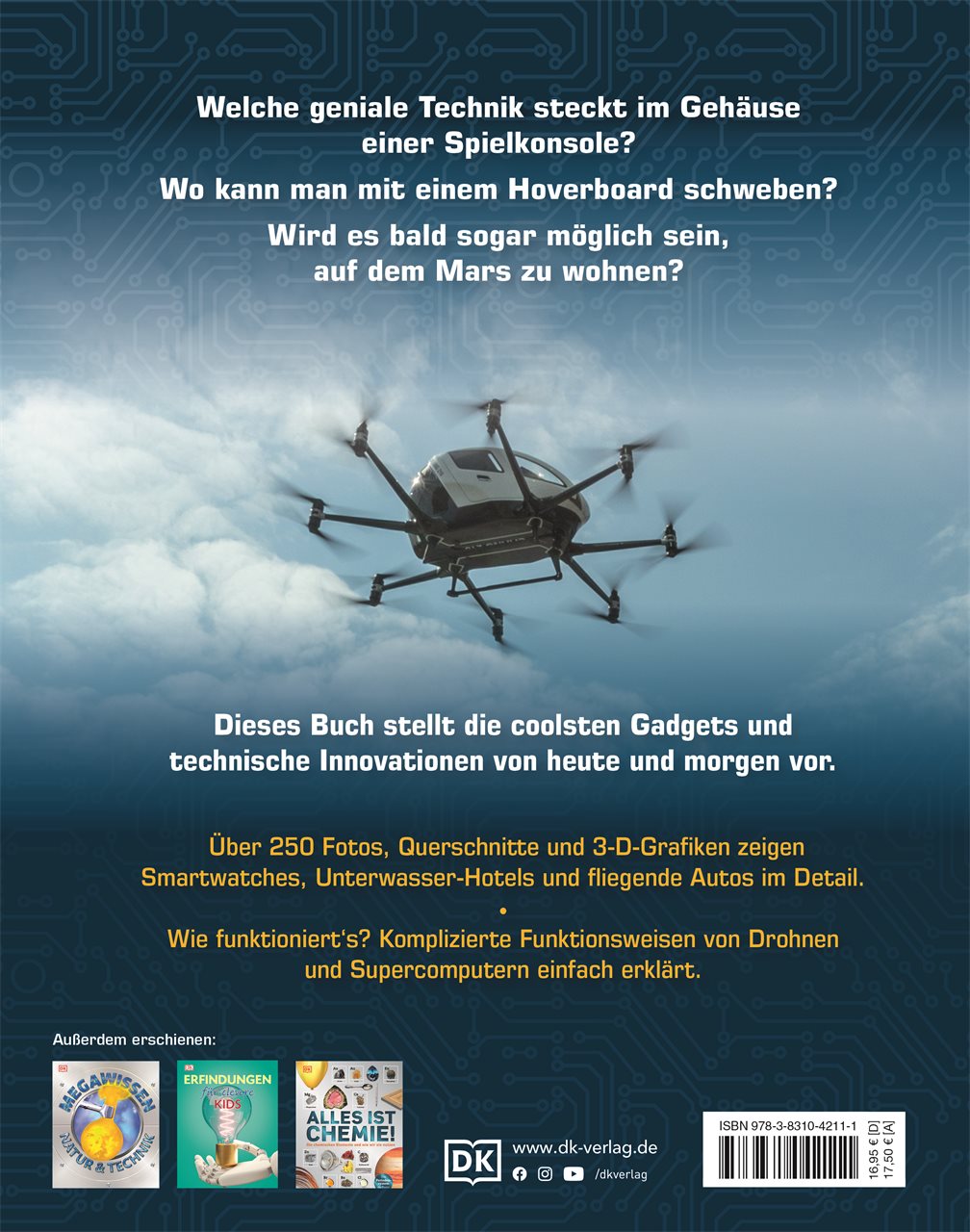 Ob Tablets, Smartwatches oder Spielekonsolen Technik im Alltag findet sich einfach überall! Und auch technologische Innovationen wie Wohnen auf dem Mars und Teleportation sind heutzutage ebenfalls keine reinen Science-Fiction-Visionen mehr. All diese bemerkenswerten technischen Kreationen sind in diesem Buch versammelt von heutigen Geräten wie Action-Kamera und Elektroauto bis hin zu zukünftigen Innovationen wie fliegende Autos oder Quantencomputer.