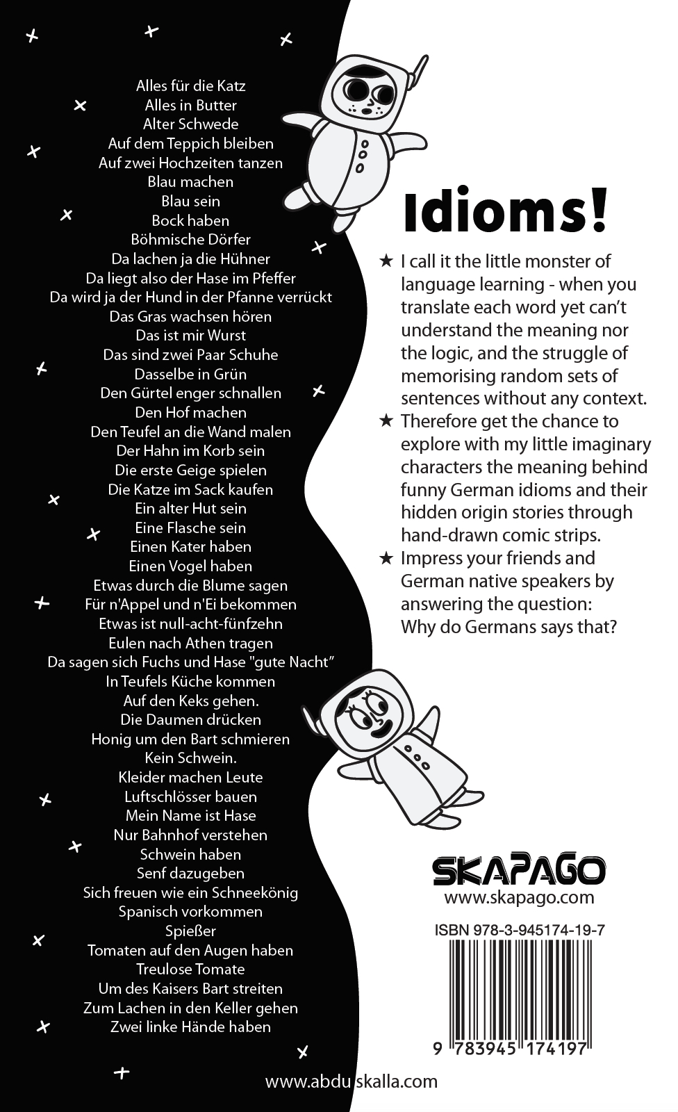 Therefore get the chance to learn German idioms with little imaginary characters. Explore 50 expressions in German and their meaning including their hidden origin stories through hand drawn comic strips.
