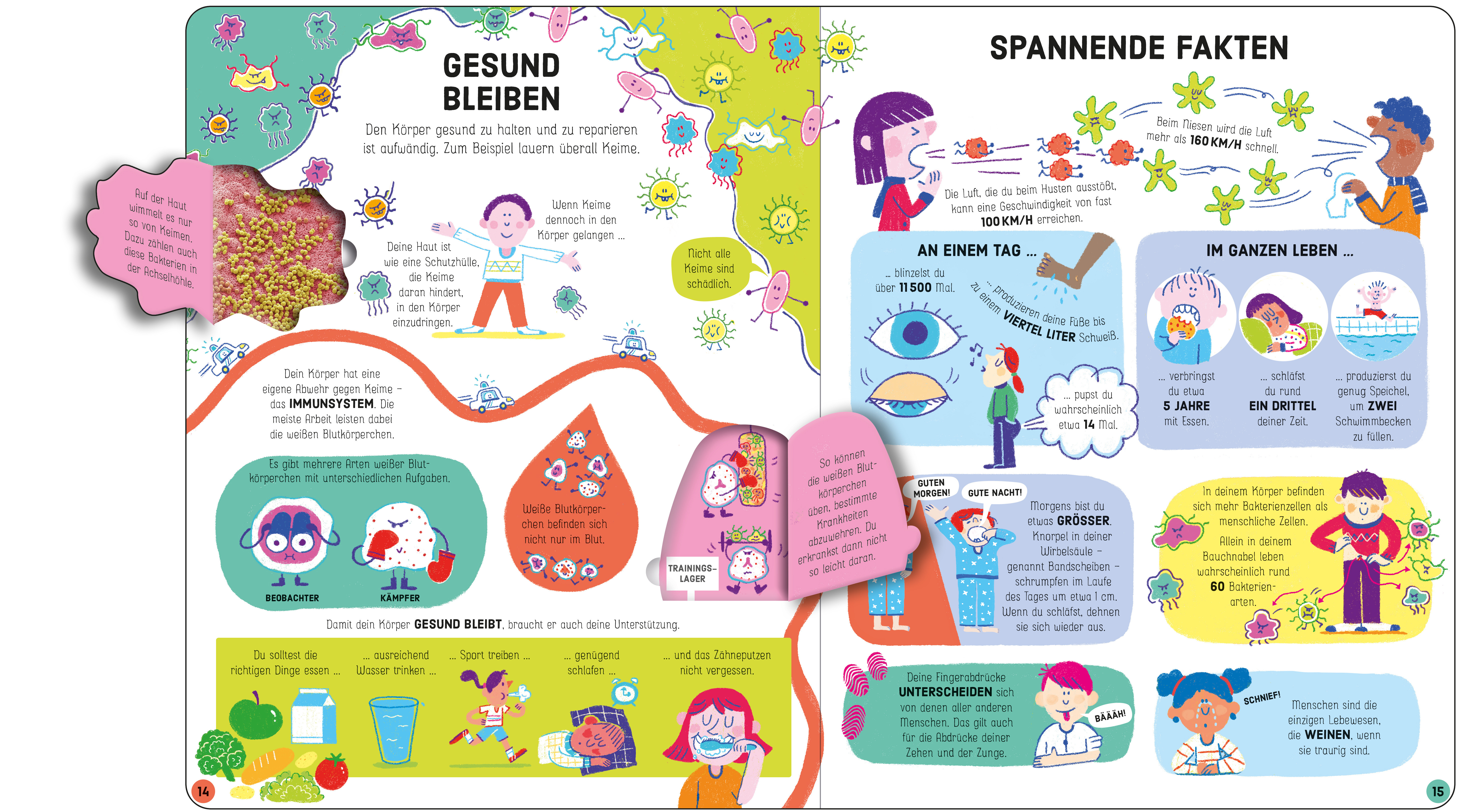 Entdecke unter mehr als 90 Klappen, was passiert, wenn du isst und wie Herz und Lunge funktionieren.