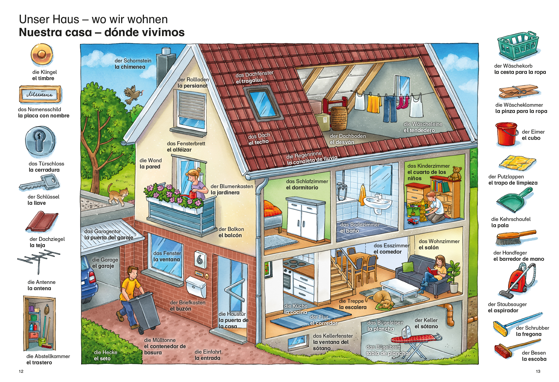 Spanisch lernen für Kinder leicht gemachtKindern im Vor- und Grundschulalter fällt das Erlernen einer Fremdsprache besonders leicht. Mit diesem Bildwörterbuch können schon Kinder ab 4 Jahren die wichtigsten spanischen Wörter aus ihrer unmittelbaren Umgebung kennenlernen. Anschauliche Szenen helfen den Kindern, sich die Begriffe schnell einzuprägen und sie richtig anzuwenden.
