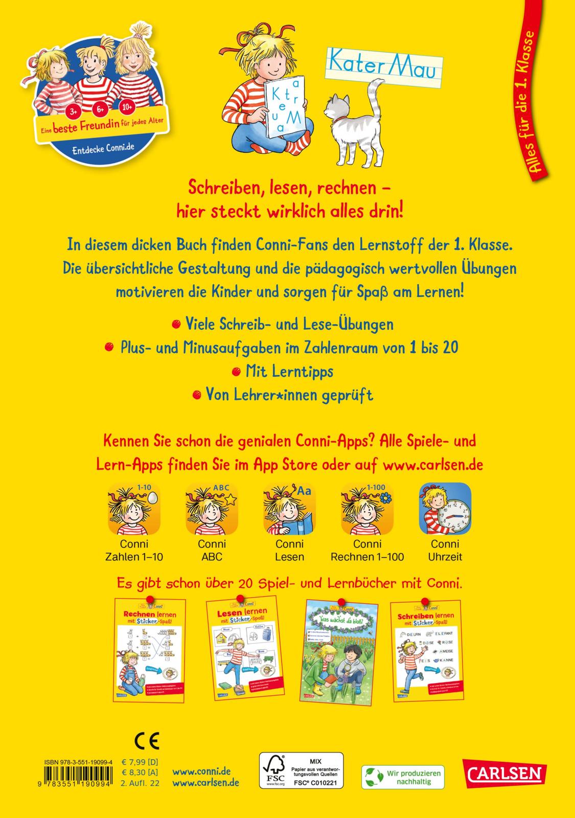Es bietet Conni-Fans den gesamten Lernstoff der 1. Klasse. Die klare und übersichtliche Gestaltung und die pädagogisch wertvollen und geprüften Übungen motivieren die Kinder und sorgen für Lernerfolge. Alle wichtigen Lerninhalte werden spielerisch vermittelt, denn lernen muss Spaß machen.