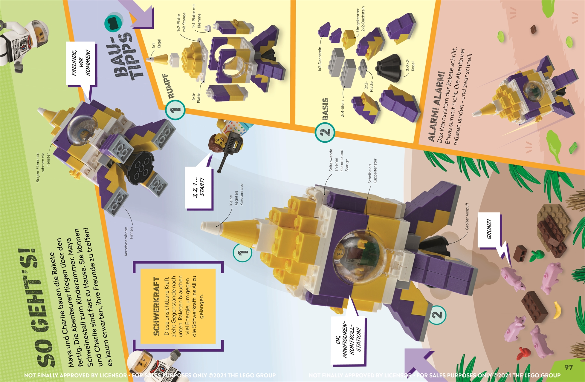 - Abwechslungsreiche LEGO® Bauideen: Ob mit selbstgebautem Katapult, ultraleichtem Flugfahrzeug oder Skaterampe - Stein für Stein helfen die Leser*innen der Minifigur Charlie, seinem Ziel näherzukommen.
