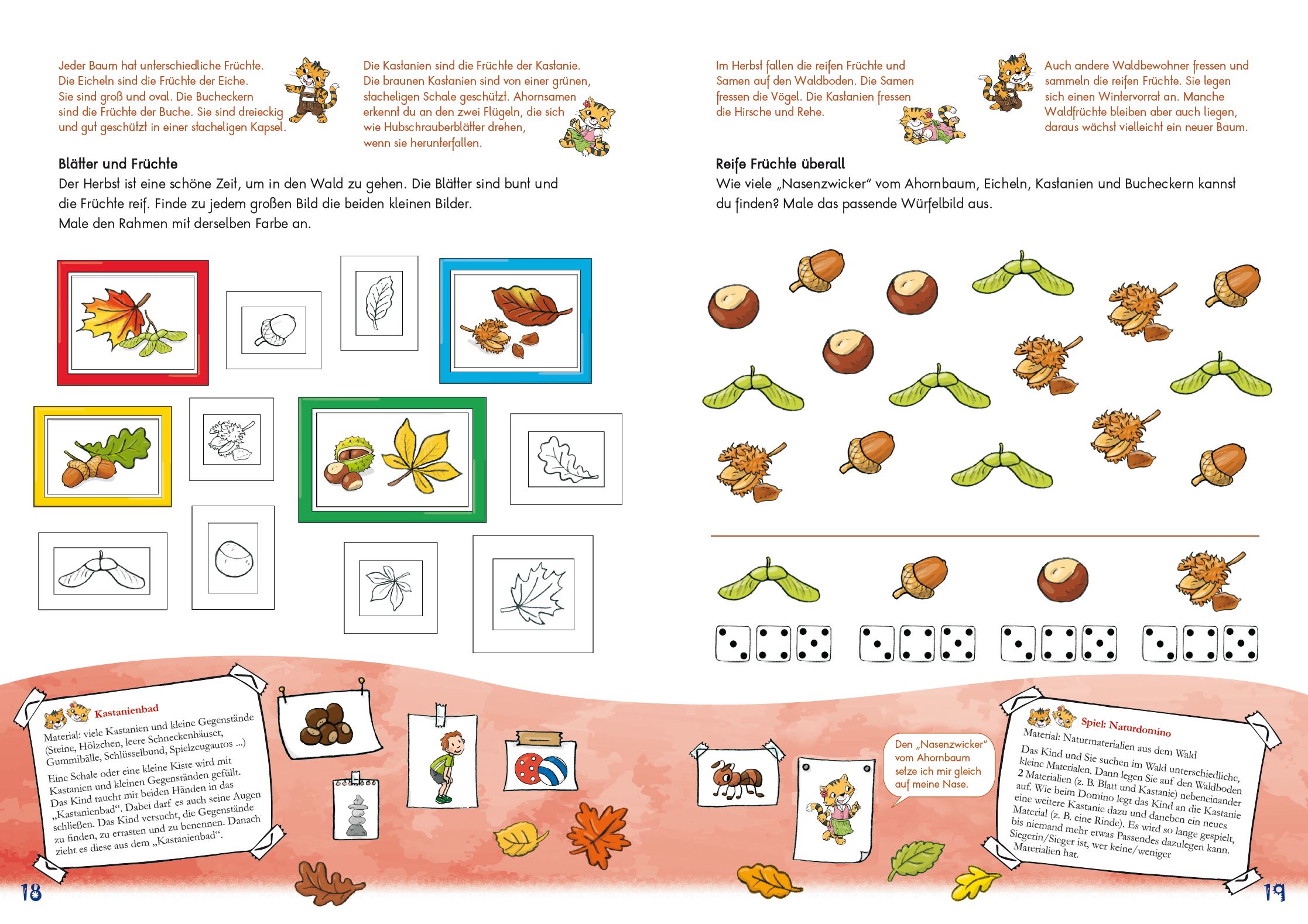 Mach mit, wenn die beiden Tiger, Teo und Tia, den heimischen Wald entdecken! Kunterbunt und lustig geht es bei den Aufgaben zu! Rätsel, Reime und Basteltipps sorgen für reichlich Abwechslung. Schau, was du alles über den Frühling, Sommer, Herbst und Winter lernen kannst! Auf jeder Seite gibt es viel Wissenswertes für dich.