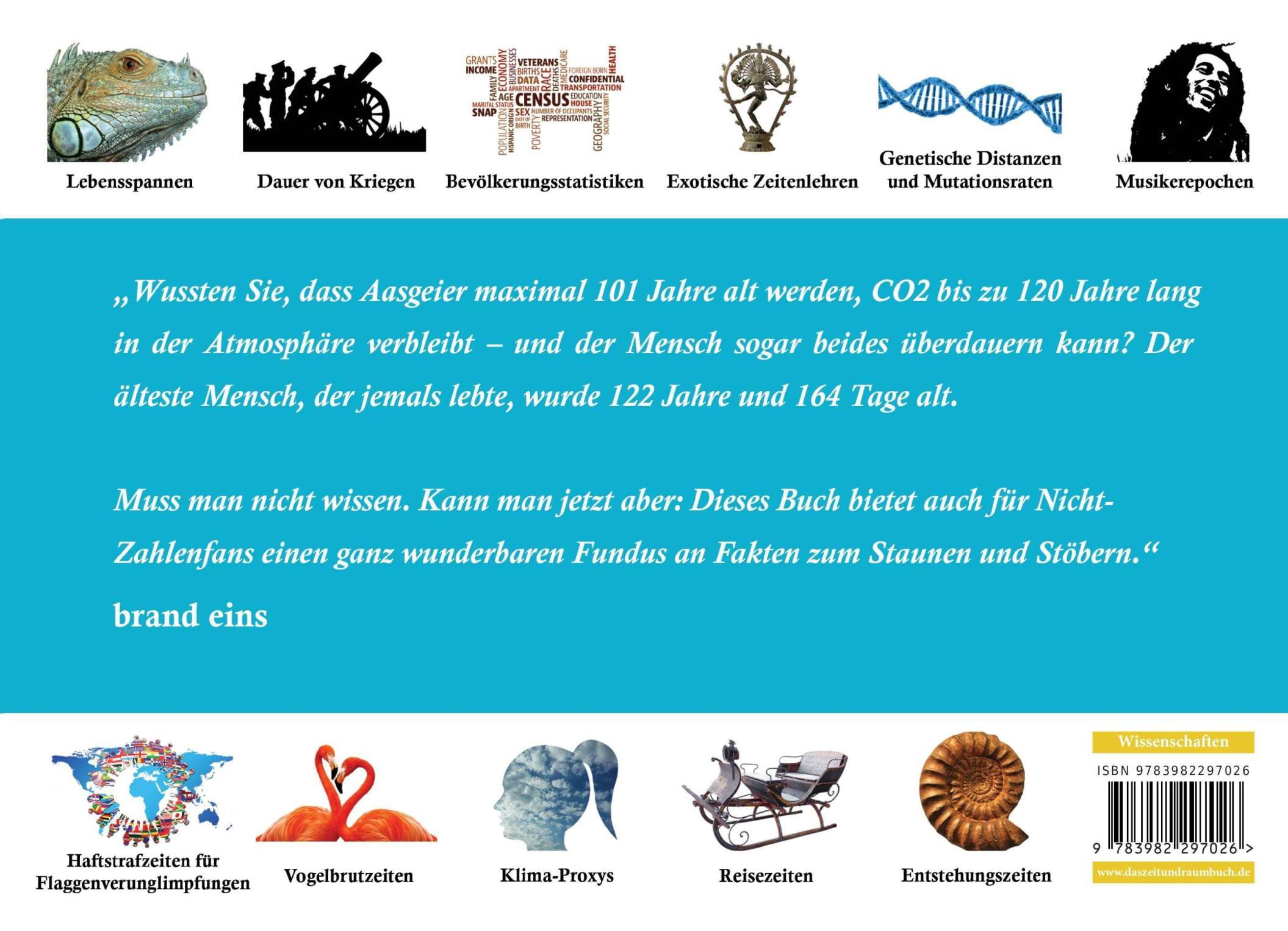 »Wussten Sie, dass Aasgeier maximal 101 Jahre alt werden, CO2 bis zu 120 Jahre lang in der Atmosphäre verbleibt – und