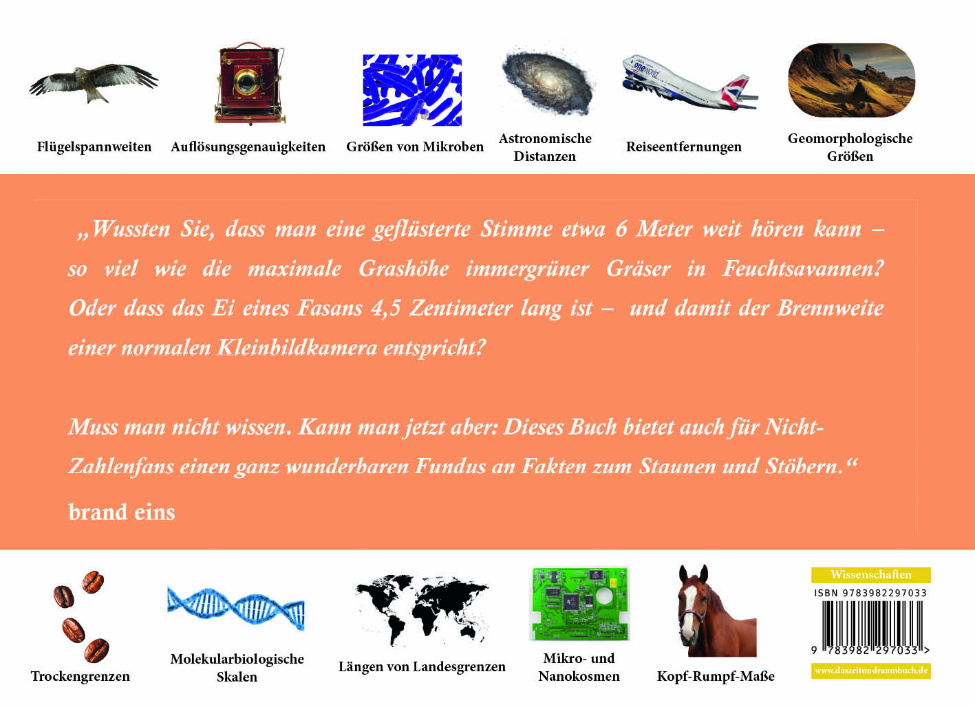 » Wussten Sie, dass man eine geflüsterte Stimme etwa 6 Meter weit hören kann – so viel wie die maximale Grashöhe immergrüner Gräser in Feuchtsavannen? Oder dass das Ei eines Fasans 4,5 Zentimeter lang ist – und damit der Brennweite einer normalen Kleinbildkamera entspricht?