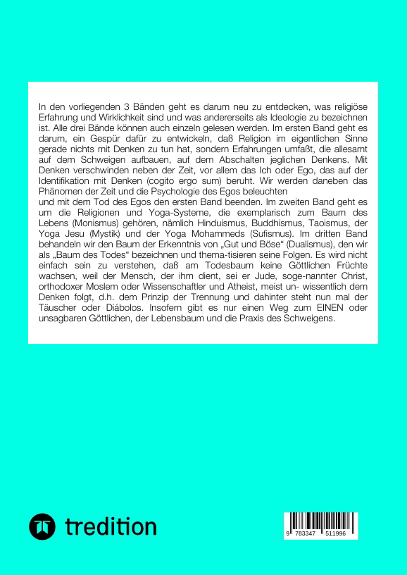 The Author was born 1960 in Germany. With nearly 18 years he went to India and visited the Sri Aurobindo Ashram, where the root of spiritual yearning was planted in his heart. All seed need time to increase and to mount, in modern times most of all a spiritual seed. So, he first studied economics but changed after the intermediate Diploma to sociology. After the degree he received a training as systemic therapist and worked in an addiction clinic and for a welfare association. After the doctorate as Ph.D., he went freelance in Düsseldorf with legal guardian-ship, life counselling and motivational training. A heavy burnout with severe depressions and lots of failed therapies led finally to an occupational disability. On the basis of his diaries, he recapitulated his life and started to travel to Asia. Meanwhile he is married with his Thai-wife, lives in a farmer village und writes about the stony and thorny way from the tree of knowledge to the tree of life. This involves the whole life and leads to a fundamental different paradigm whereby the identification with thinking (“cogito ergo sum”) ceases and in place of thinking and word the inner silence has priority. But with that also our identity is changing. The silence led to the heart as the new centre of identity. Here, the people are connected with the whole, whereas the thinking identity is separating itself from all. And still more, we find back from thinking our life to experience our life – a fundamental change! So, this spiritual revolution is not a singular event but the paradigm of the future. The last culture representing this heart-centered identity was the high culture of the Native Americans. All the troubles, the world is now facing, will lead to an overcome of the mind-centered ego to the benefit of the Divine self, or in Buddhist language, to a non-ego and the freedom of duality. All books of the author are circling around this fundamental and evolutionary step forward to a higher species, the Hyper-anthropos. Humankind will either triumph in transcendence or die out in decadence. Anyway, the victory of the light is sure, either on this wonderful earth or elsewhere in the endlessness of the Divines manifestation in space and time.