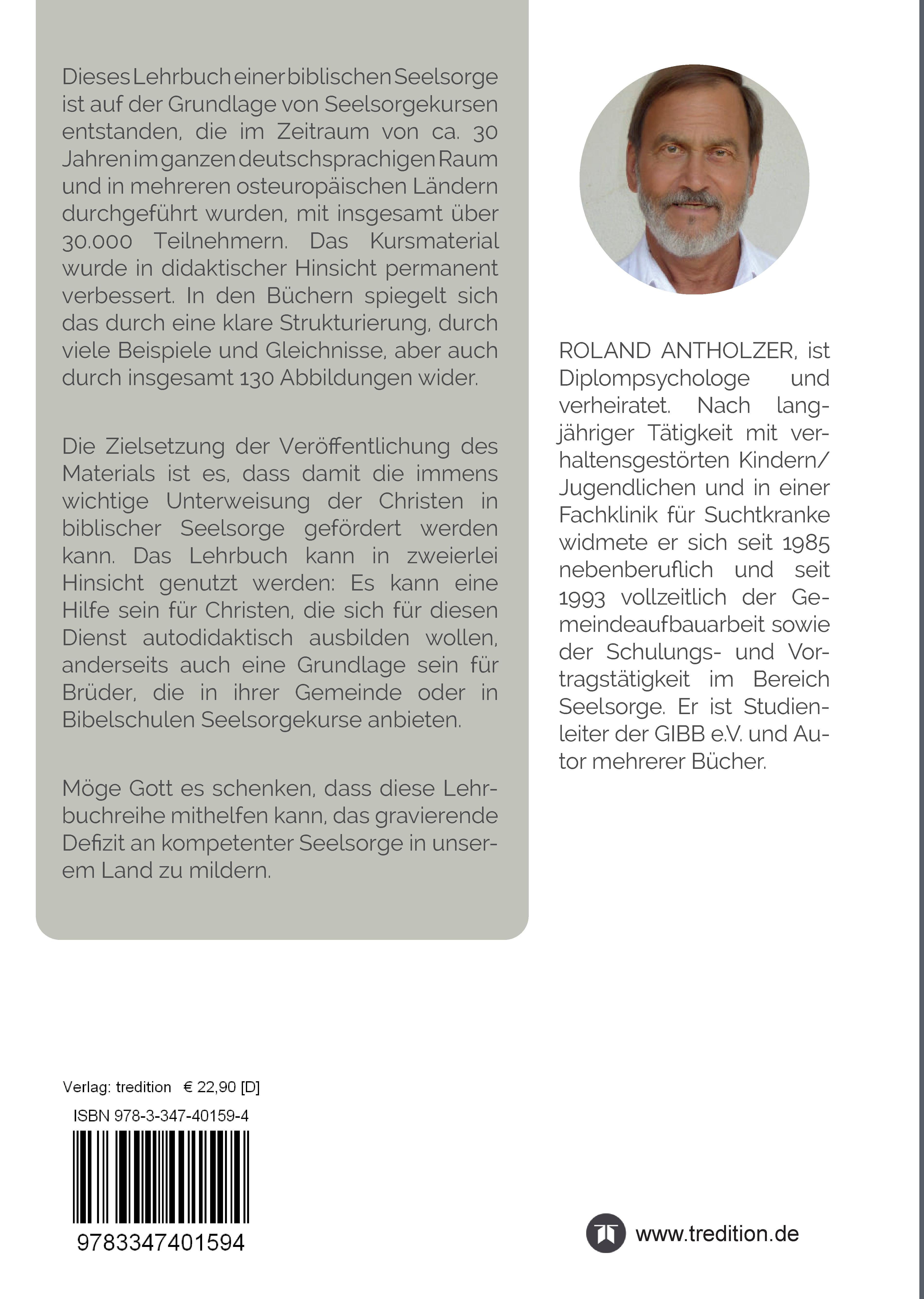 Roland Antholzer ist Diplompsychologe und verheiratet. Nach langjähriger Tätigkeit mit verhaltensgestörten Kindern/Jugendlichen und in einer Fachklinik für Suchtkranke widmete er sich seit 1985 nebenberuflich und seit 1993 vollzeitlich der Gemeindeaufbauarbeit sowie der Schulungs- und Vortragstätigkeit im Bereich Seelsorge. Er ist Studienleiter der GIBB e.V. und Autor mehrerer Bücher.