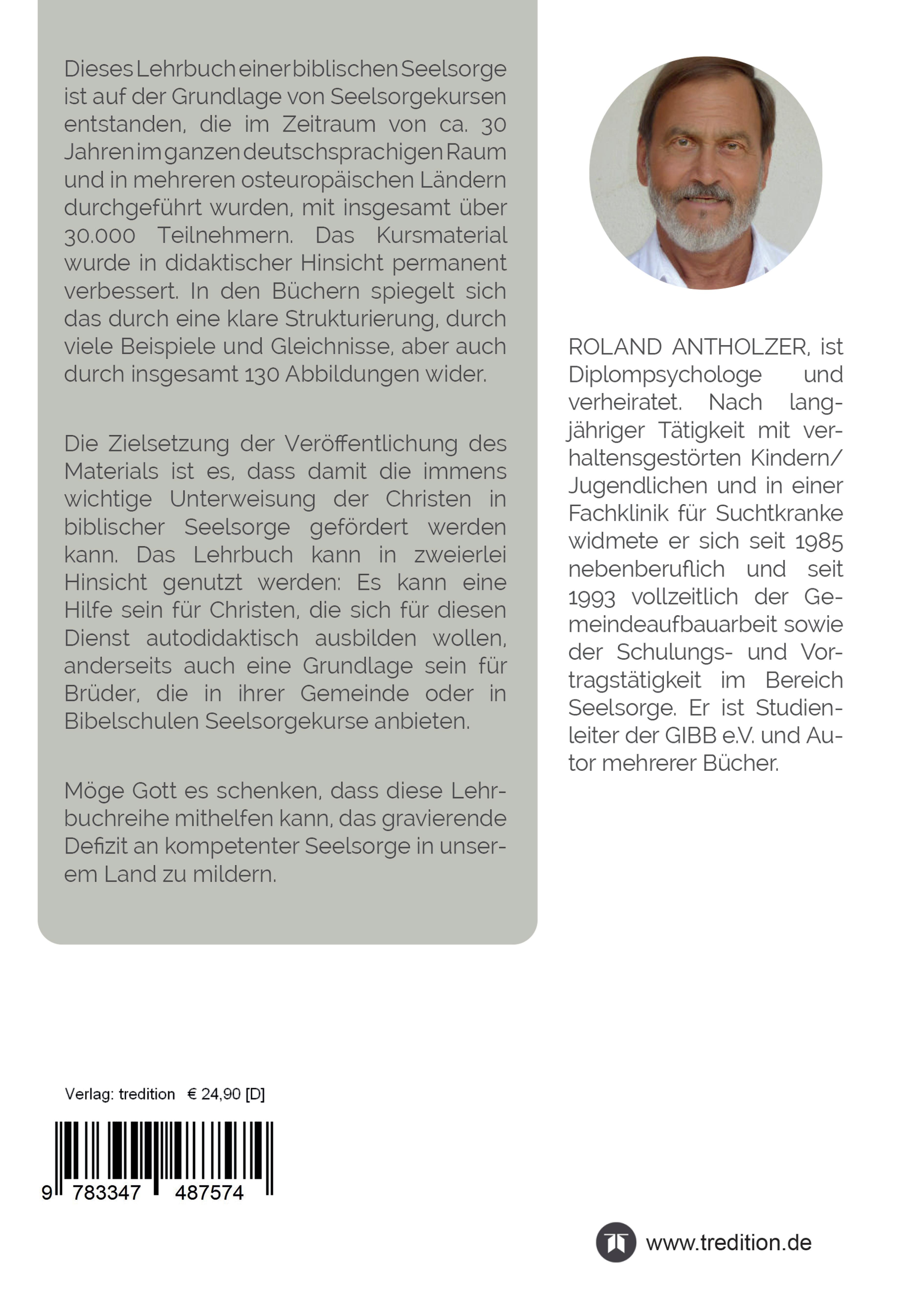Roland Antholzer ist Diplompsychologe und verheiratet. Nach langjähriger Tätigkeit mit verhaltensgestörten Kindern/Jugendlichen und in einer Fachklinik für Suchtkranke widmete er sich seit 1985 nebenberuflich und seit 1993 vollzeitlich der Gemeindeaufbauarbeit sowie der Schulungs- und Vortragstätigkeit im Bereich Seelsorge. Er ist Studienleiter der GIBB e.V. und Autor mehrerer Bücher.