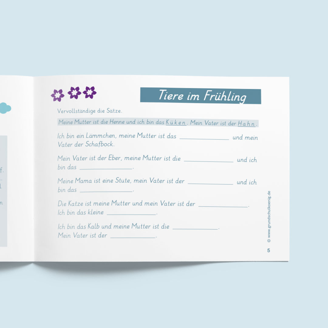 Unser Freiarbeitsheft zum Thema “Frühling” für die 2. Klasse enthält Aufgaben für Mathe und Deutsch zu den Themen: