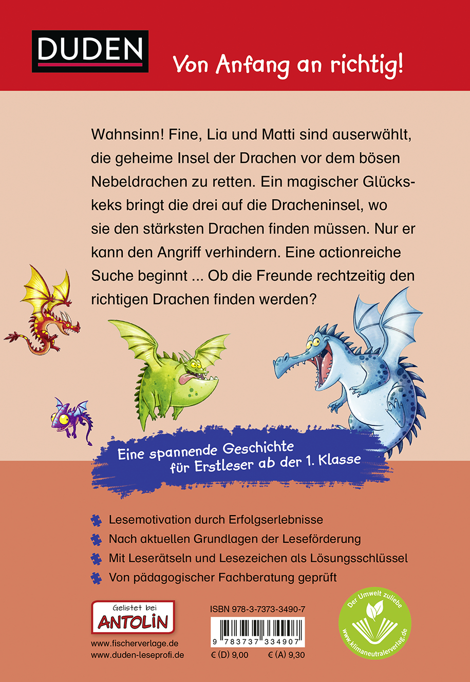Wahnsinn! Fine, Lia und Matti sind auserwählt, die geheime Insel der Drachen vor dem bösen Nebeldrachen zu retten. Mithilfe eines magischen Glückskekses gelangen die drei Freunde auf die geheimnisvolle Dracheninsel. Dort müssen sie so schnell wie möglich den stärksten Drachen finden. Nur er kann den Angriff des Nebeldrachens verhindern, und der kommt früher als gedacht. Eine actionreiche Suche und ein Wettlauf gegen die Zeit beginnen ... Ob die Freunde rechtzeitig den richtigen Drachen finden werden?