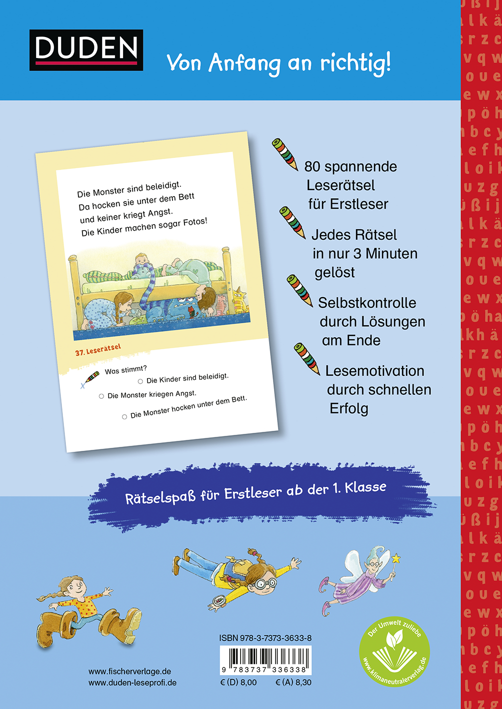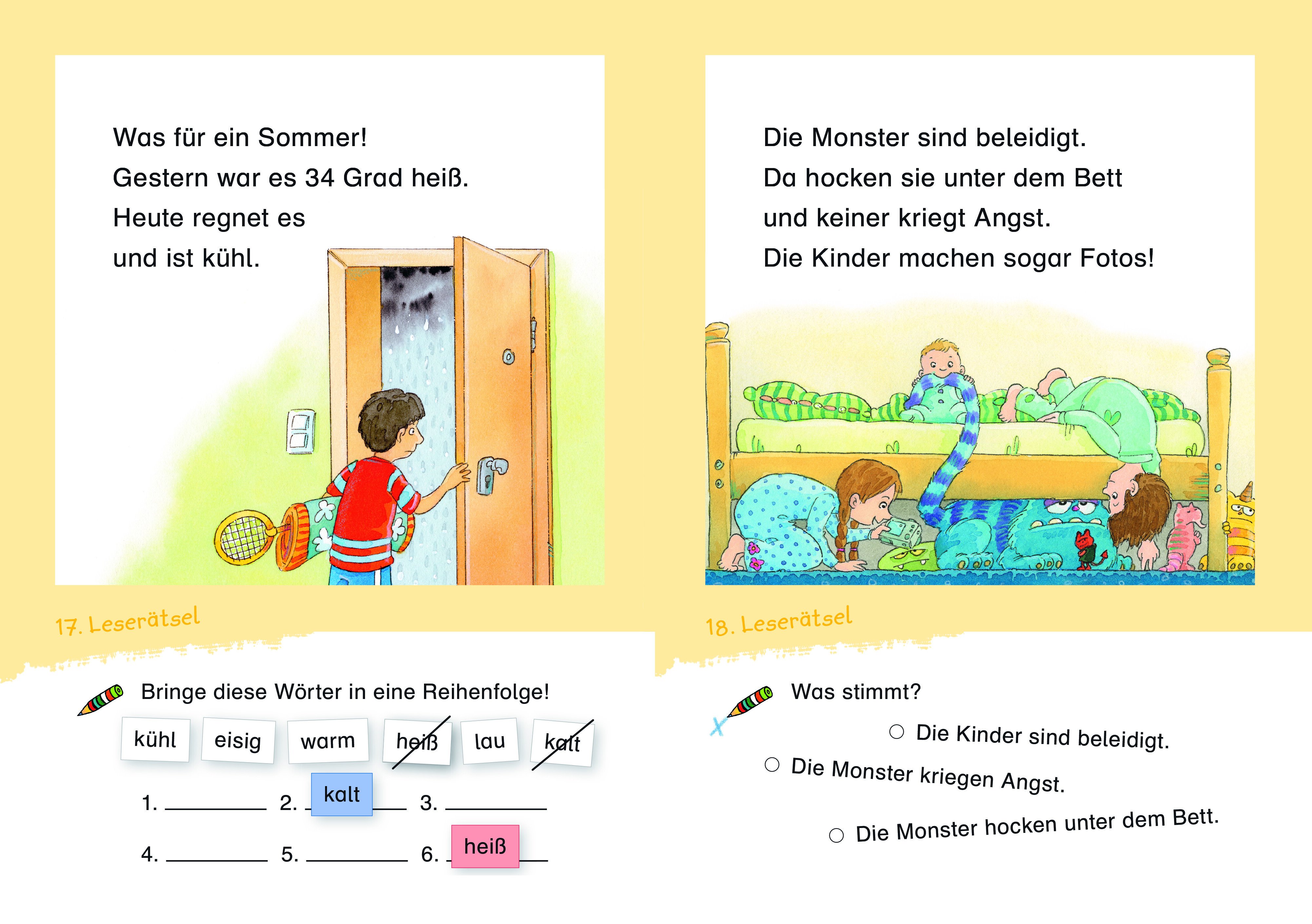 Ob zu Hause auf der Couch, in den Ferien oder ganz woanders: Für diese spannenden Leserätsel zu den beliebten Themen "Magie und Ferien" ist immer Zeit! In nur 3 Minuten haben die Erstleser ein Rätsel gelöst und mittels der Lösung am Ende herausgefunden, ob sie richtig liegen.
