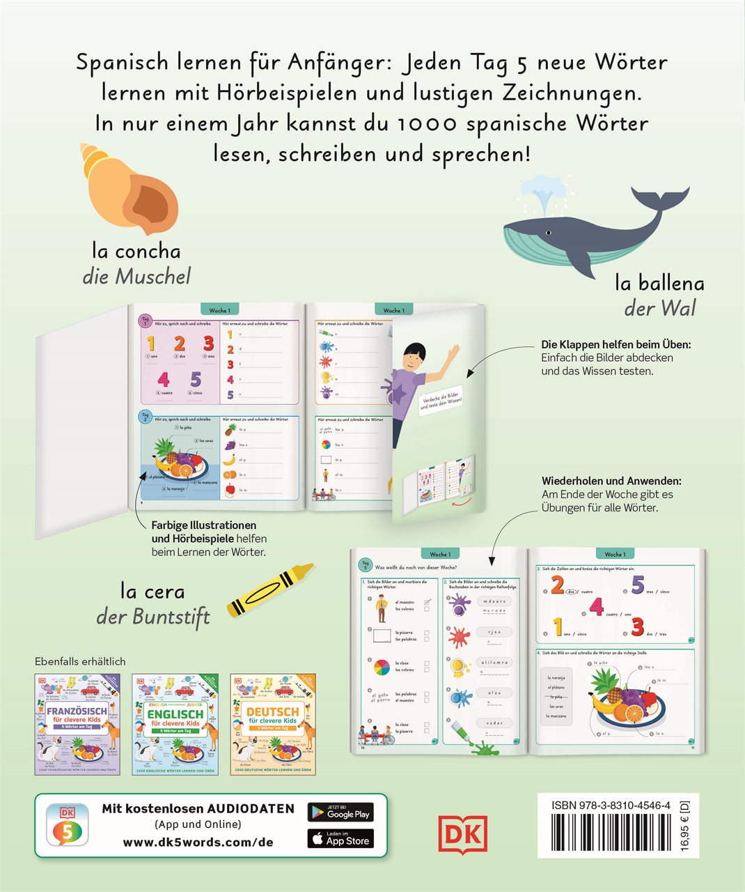 1000 erste Spanisch-Vokabeln: Mit einfachen Übungen, Illustrationen und Audio-Beispiel lernen Kinder spielerisch 5 Wörter pro Tag