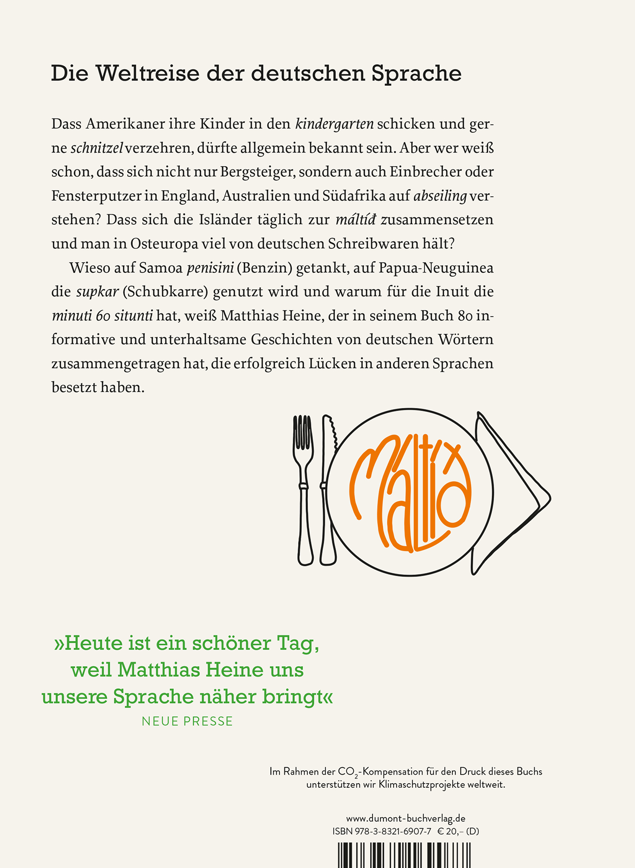 »Großer Spaß.« STERN »Kundig und vergnüglich« Barbara Weitzel, WELT AM SONNTAG KOMPAKT »Hübsch illustriert von Daniele Simonelli« Kerstin Panter, PSYCHOLOGIE HEUTE »Matthias Heines faktenreiche Erkundung deutscher Wortschicksale erweist sich als unterhaltsame Horizonterweiterung. Die ideale Lektüre für Mußestunden, vielleicht sogar in einem Gästezimmer oder, wie der entsprechende Germanismus auf Hebräisch lautet: in einem 'tsimer'.« Ingeborg Waldinger, DIE FURCHE »In seinem neuen Buch trägt er informative und unterhaltsame Geschichten von deutschen Wörtern zusammen, die erfolgreich Lücken in anderen Sprachen besetzt haben.« Ronald Meyer-Arlt, HANNOVERSCHE ALLGEMEINE ZEITUNG »Sehr unterhaltsam« Simone Spang, MDR SACHSEN »All diese Wörter haben eine aufregende Geschichte zu erzählen, die Matthias Heine informativ und mit garantiertem Aha-Effekt darlegt.« Rebekka Stauber, BERLINER MORGENPOST »Kurzgeschichten mit Aha-Effekt« Lilo Berg, IMPULSE