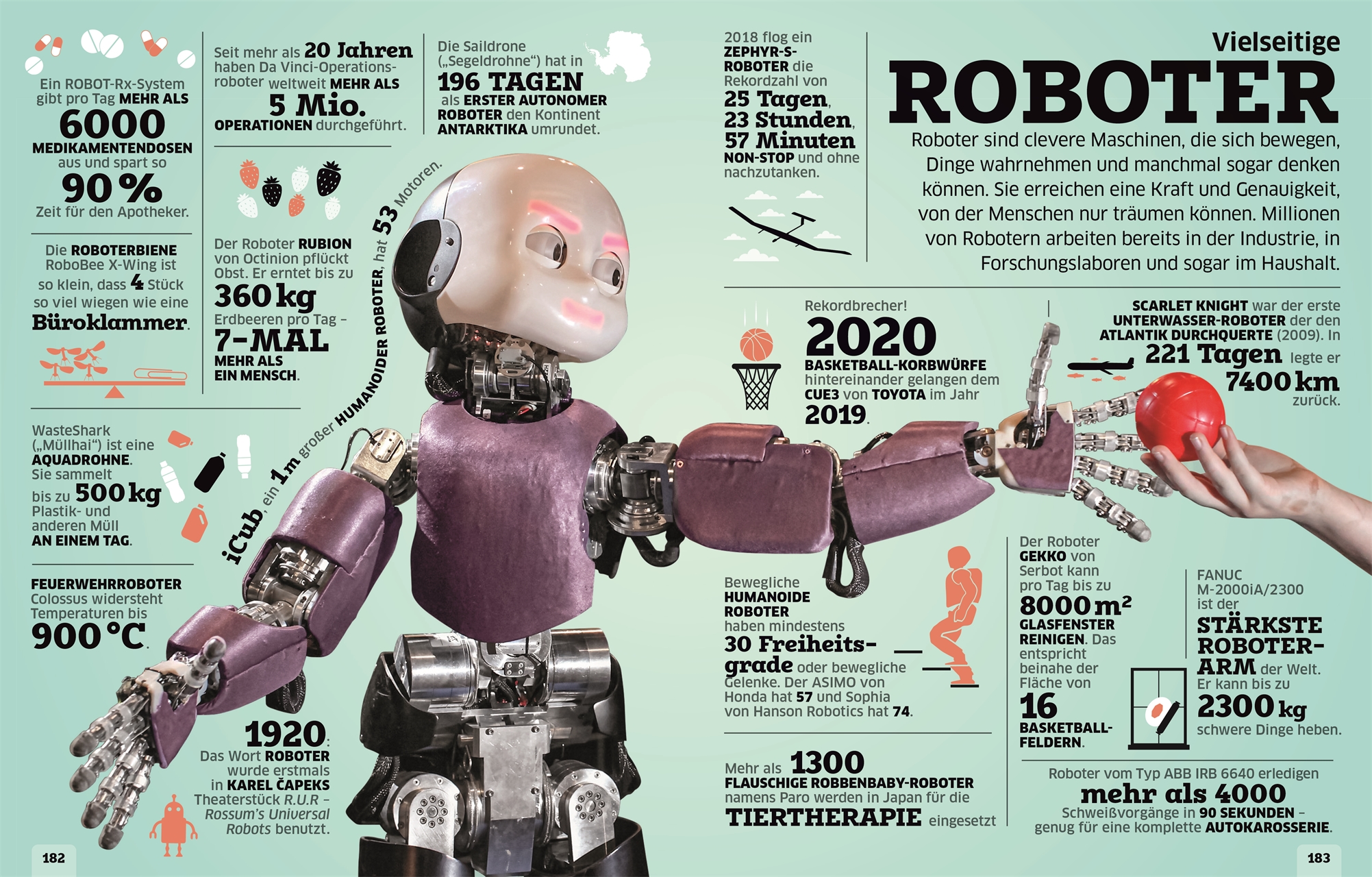 - Wissen visuell: Infografiken, Daten und Statistiken reihen sich um beeindruckende Fotografien, vom Vulkanausbruch bis zum Grönlandhai