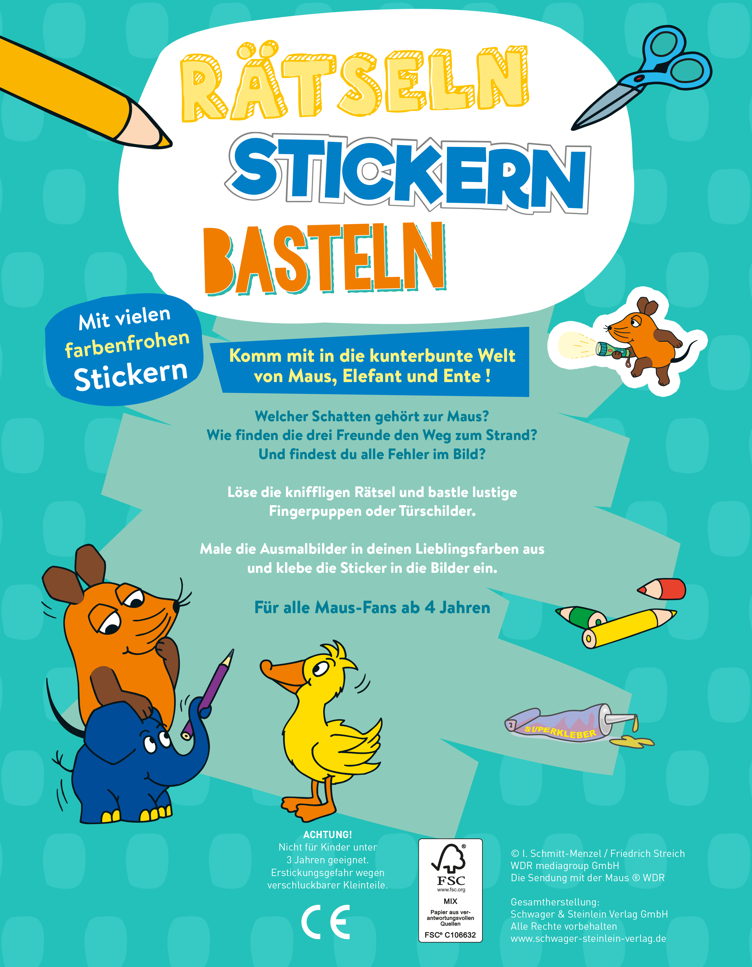 | Schlagworte | ARD • Aufkleber • Ausmalbilder • Ausmalen • Ausschneiden • Bastelanleitungen • Bastelbuch • Basteleien • Basteln • Bastelspaß • Beschäftigungs-Spaß • Buch • Das Erste • Die Maus • DieMaus • Die Sendung mit der Maus • Elefant • Ente • Frühförderung • Geschenk für Kinder • KiKa • Kinder ab 4 Jahren • Kinder-Beschäftigung • Kinderbuch • Kindergarten • Kindergartenkinder • Kindergeburtstag • Konzentration • Logik • Mädchen und Jungen ab 4 • Malbuch • Malen • Malspaß • _Maus • Maus • Maus & Elefant • organge Maus • Rätsel • Rätselbuch • Rätseln • Rätselspaß • Schwager & Steinlein Verlag • Sendung • sendung mit der maus buch • SST • Sticker • Stickerbuch • Stickern • Vorschule • Vorschulkinder • WDR • _Weihnachtsgeschenk für Kinder • Weihnachtsgeschenk für Kinder • ZDF |