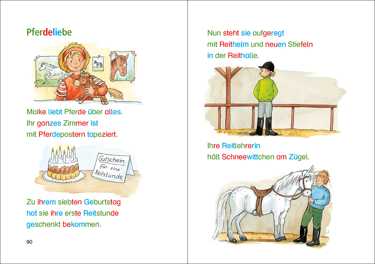 | Schlagworte | Bildermaus Lesetiger Silbenfärbung Lesenlernen • Erstes Selberlesen ab 5 Jahren • Geschenk Buch Mädchen Junge Schultüte • Kinderbücher ab 5 Jahre • Leselöwen Erstlesergeschichten • Lesen lernen ab 5 Jahren • Lesen lernen Grundschule 1. Klasse • Lesen lernen in der Vorschule • Schulanfang Schulstart Schulbeginn • Tiergeschichten Pferde Ponys für Erstleser • Vorschule Kindergarten Bücher |