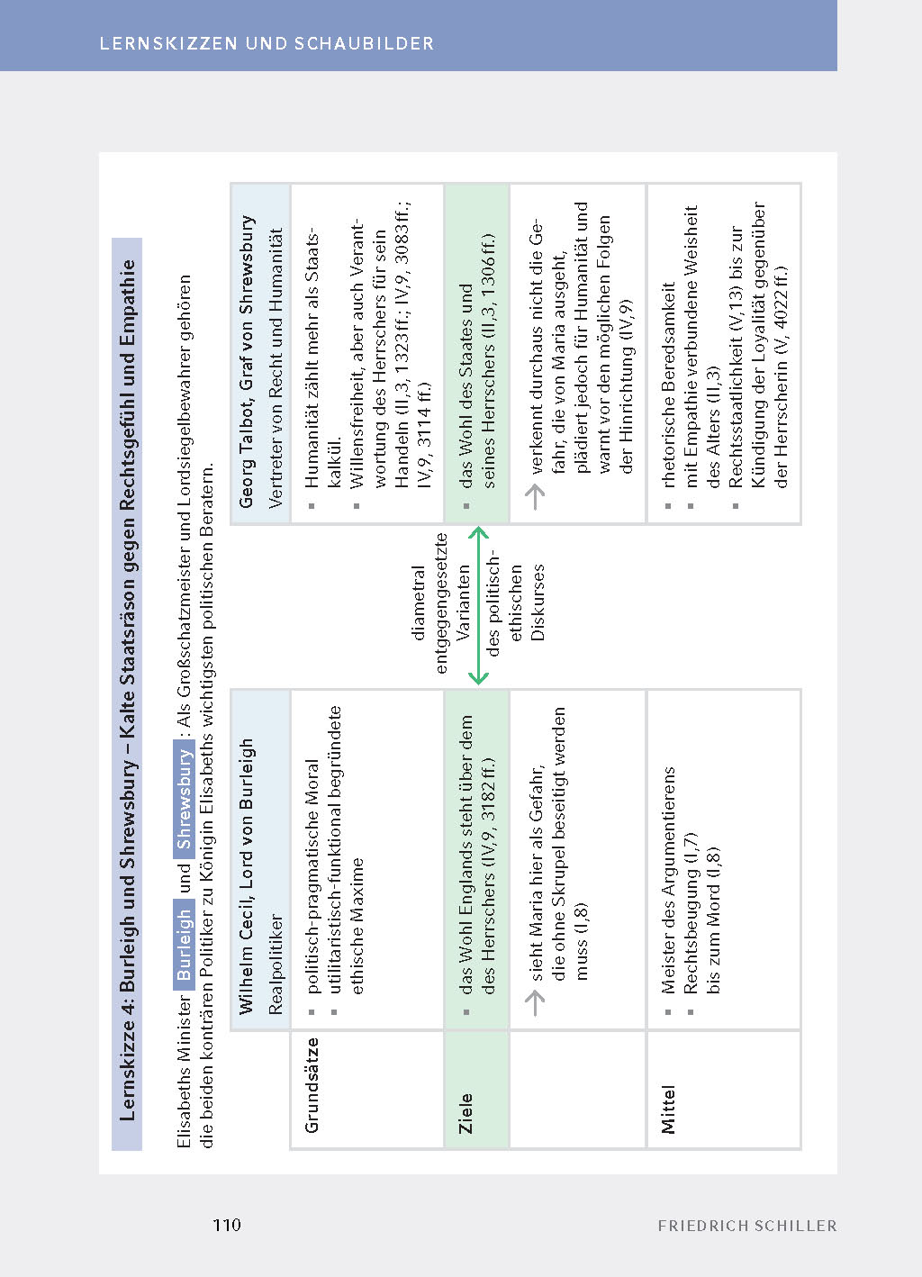 1 DAS WICHTIGSTE AUF EINEN BLICK SCHNELLÜBERSICHT2 FRIEDRICH SCHILLER: LEBEN UND WERK2.1 Biografie2.2 Zeitgeschichtlicher HintergrundSchottland als Spielball der MächtigenElisabeth l. von England und Maria Stuart 2.3 Angaben und Erläuterungen zu wesentlichen Werken 3 TEXTANALYSE UND -INTERPRETATION3.1 Entstehung und Quellen 3.2 InhaltsangabeAkt lAkt llAkt lllAkt lVAkt V 3.3 AufbauKlassischer AufbauSymmetrische Struktur 3.4 Personenkonstellation und CharakteristikenMaria StuartElisabeth l.Robert Dudley, Graf von LeicesterMortimerGeorg Talbot, Graf von ShrewsburyWilhelm Cecil, Baron von BurleighHanna KennedyMelvil3.5 Sachliche und sprachliche Erläuterungen3.6 Stil und Sprache3.7 InterpretationsansätzeMaria Stuart als MärtyrerdramaMaria Stuart als patriarchalisches StückMaria Stuart als politisches DramaMaria Stuart als psychologische StudieMaria Stuart als klassisches Ideendrama3.8 Schlüsselstellenanalysen4 REZEPTIONSGESCHICHTE5 MATERIALIEN6 PRÜFUNGSAUFGABEN MIT MUSTERLÖSUNGENLERNSKIZZEN UND SCHAUBILDERLITERATUR