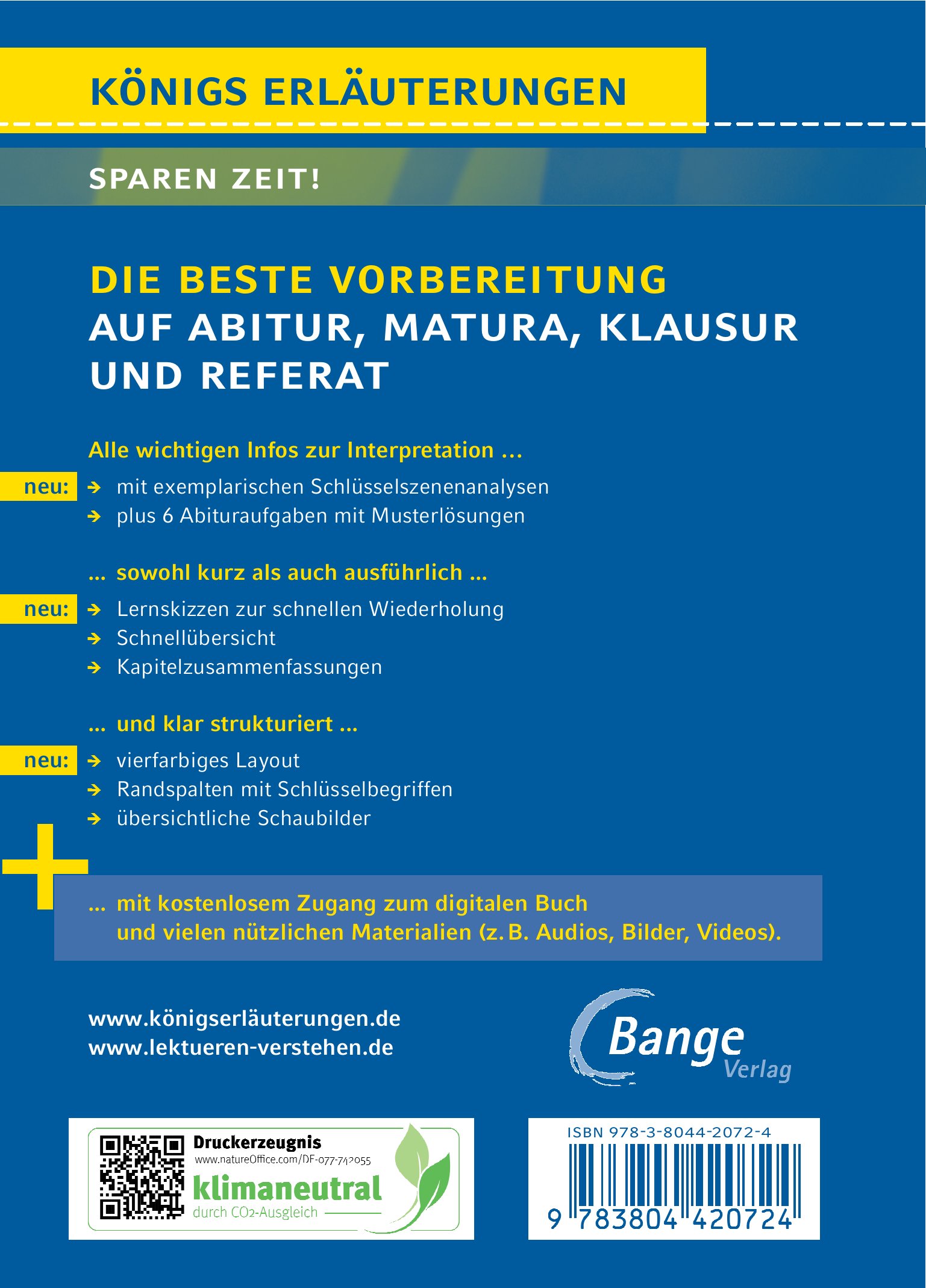 In diesem Band findest du alles, was du zur Vorbereitung auf Referat, Klausur, Abitur oder Matura benötigst ohne das Buch komplett gelesen zu haben.