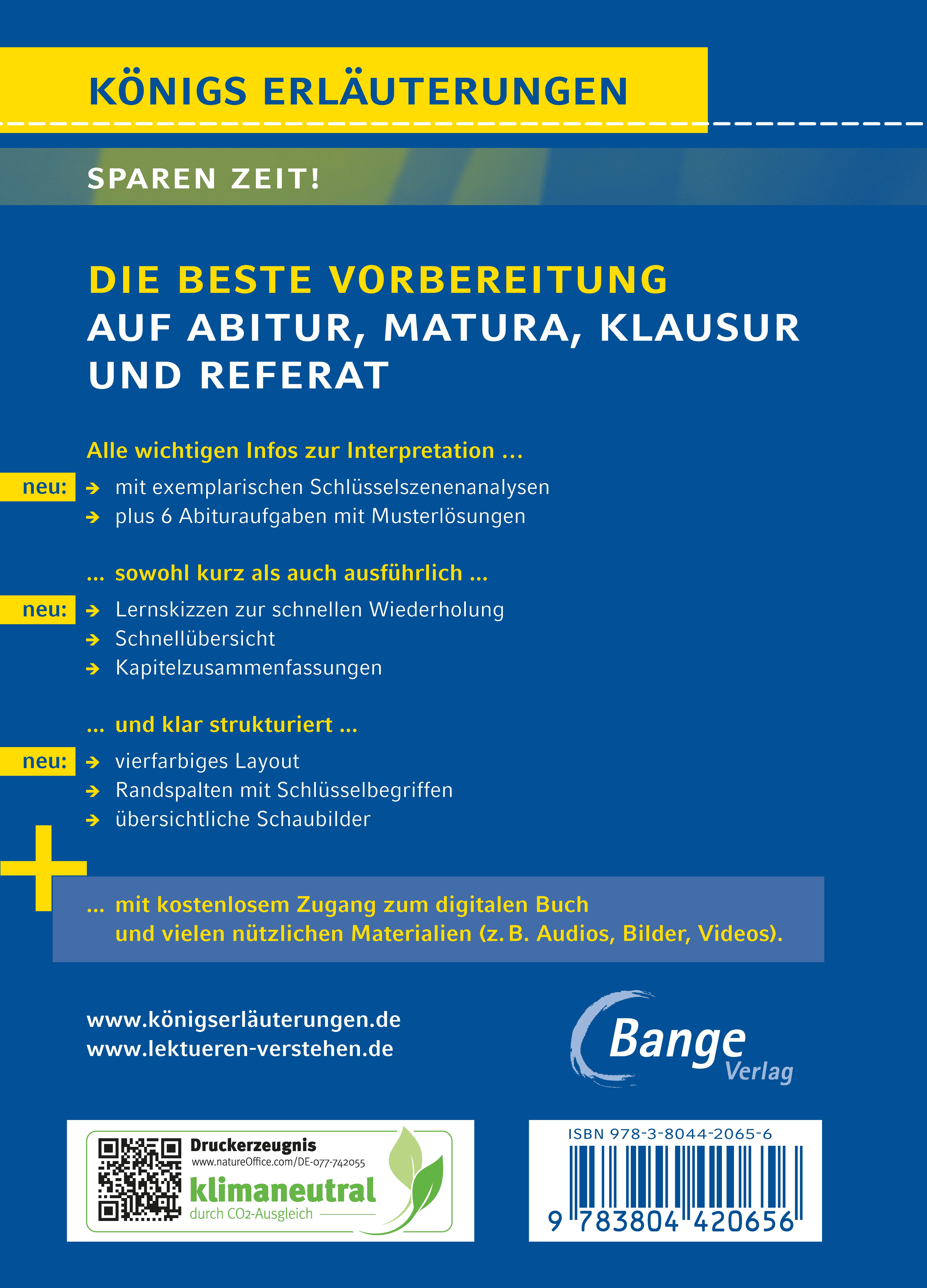 In diesem Band findest du alles, was du zur Vorbereitung auf Referat, Klausur, Abitur oder Matura benötigst ohne das Werk komplett gelesen zu haben.