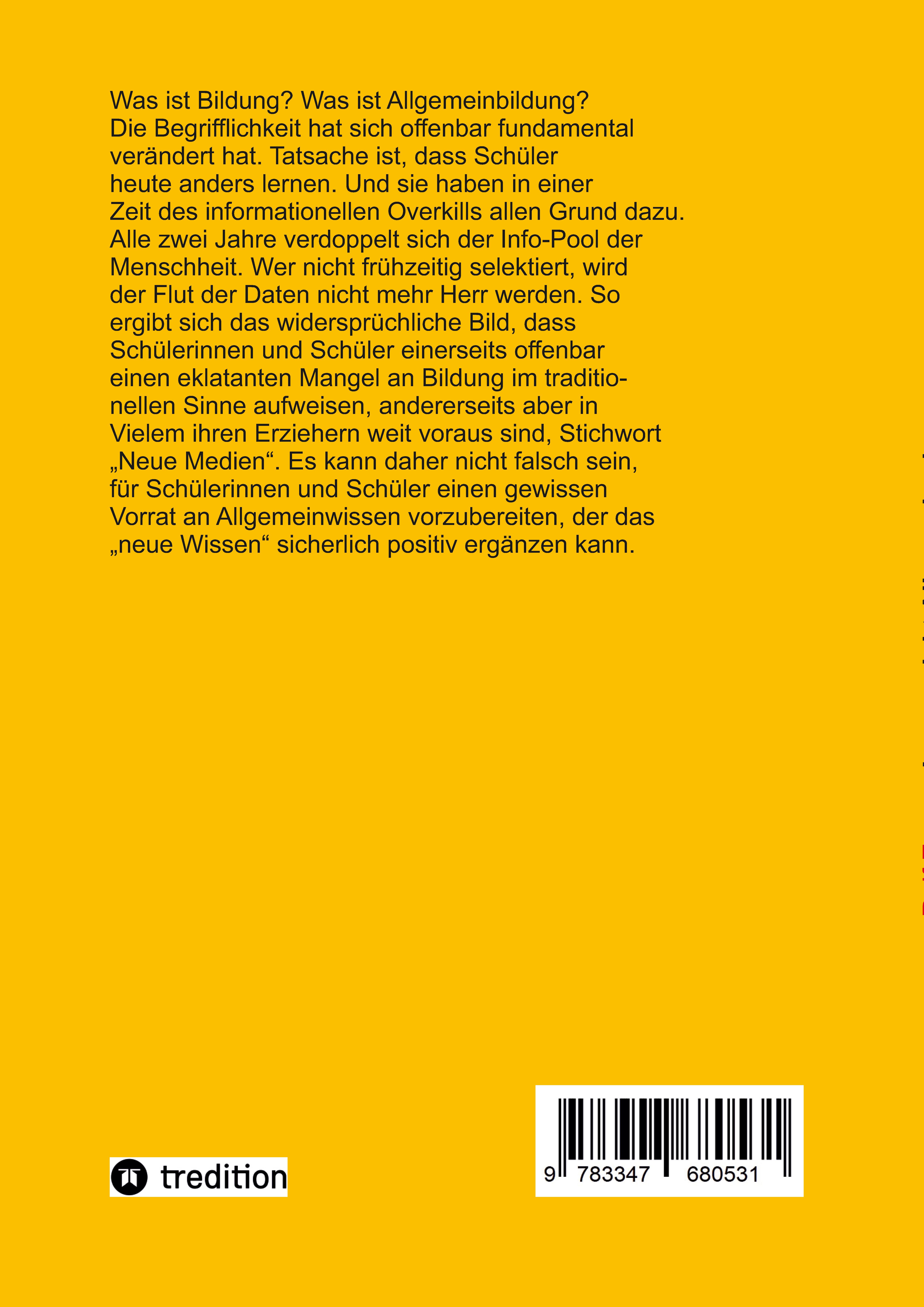 Bei diesem "Lernprojekt Allgemeinwissen" geht es um deutsche Geschichte und Politik im 20. Jahrhundert. Das Lernen in wohl dosierten Portionen ist hier das Ziel. Und so sollten Sie auch das Angebot auffassen, das Sie mit dem "Lernprojekt Allgemeinwissen" erhalten. Diese Portionen, subjektiv vom Autor ausgewählt und als "Allgemeinwissen" bezeichnet, kann man lernen, während man das Lernen gleichzeitig wieder lernt. Systematisch und ohne Stress, sogar eingebunden in Unterrichtsformen wie Wochenplan oder Freiarbeit.