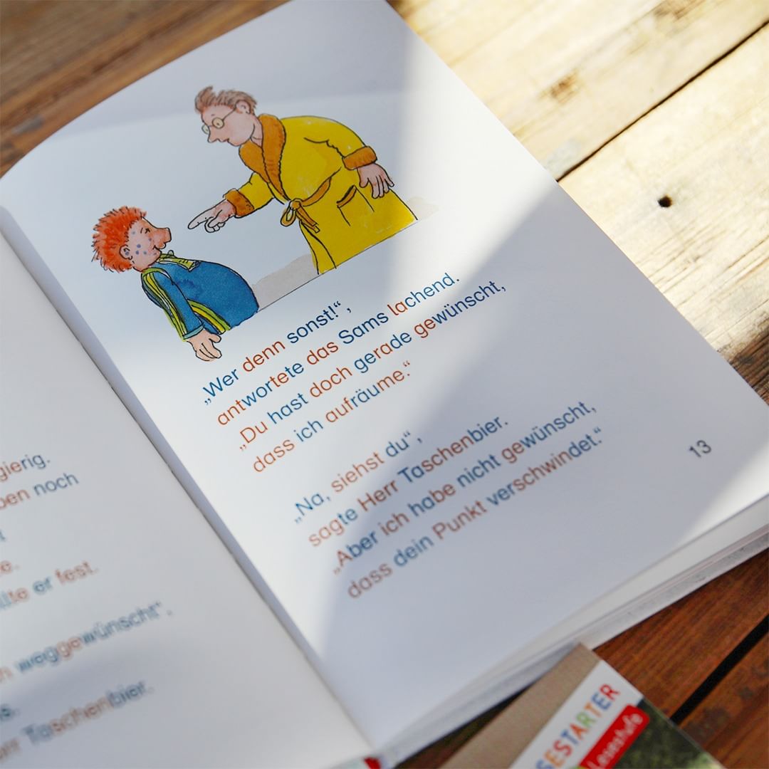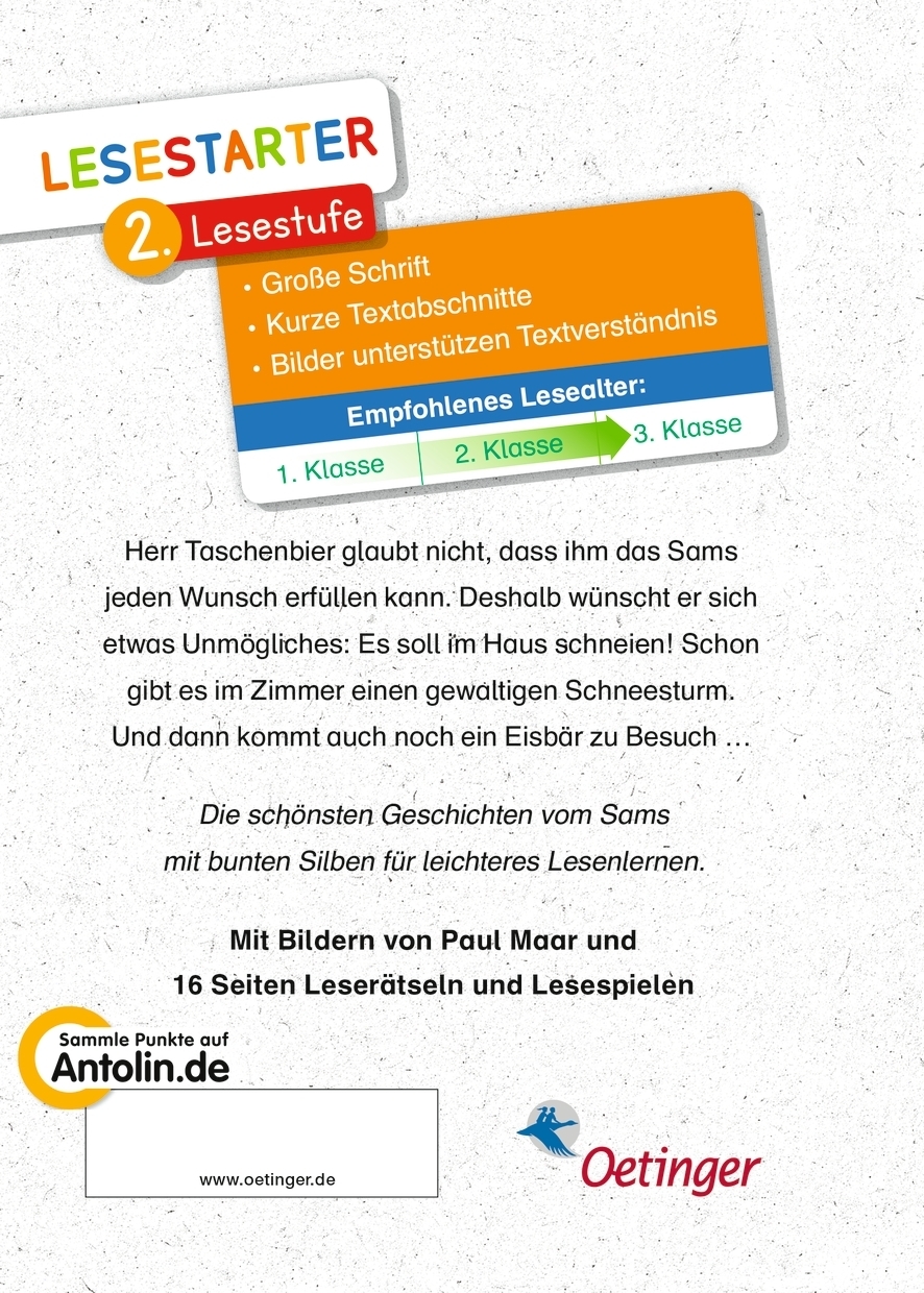 - Die frechen Sams-Geschichten aus der Feder von Paul Maar motivieren kleine Leseratten, beim Lesenüben am Ball zu bleiben.